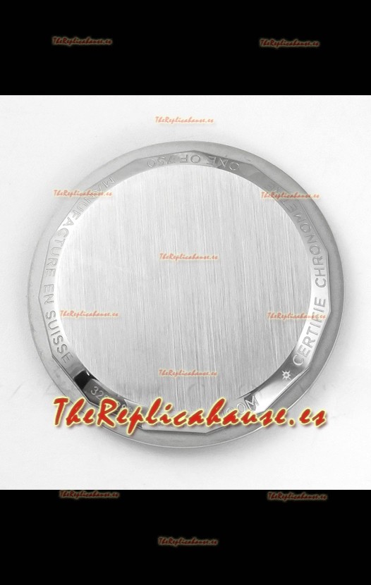 Cristal de Zafiro a prueba de Rasguños con Doble Revestimiento AR en ambos lados, Cubierta trasera de Cristal de Zafiro Transparente completada con Marcas y Grabados Breitling