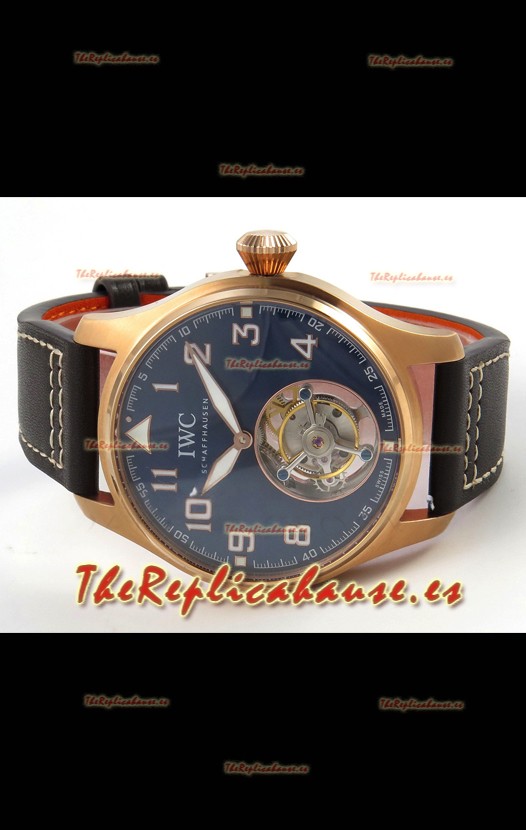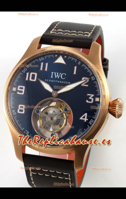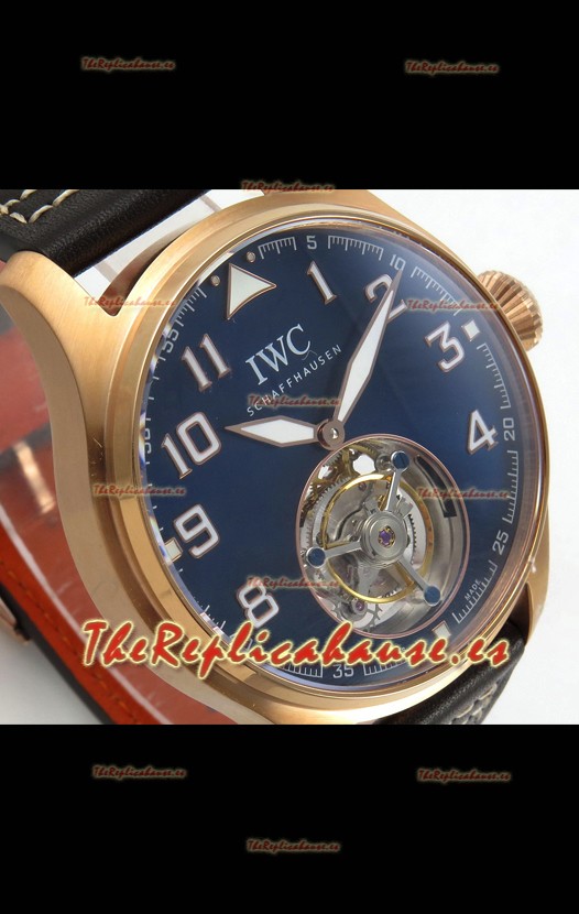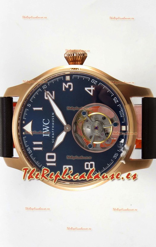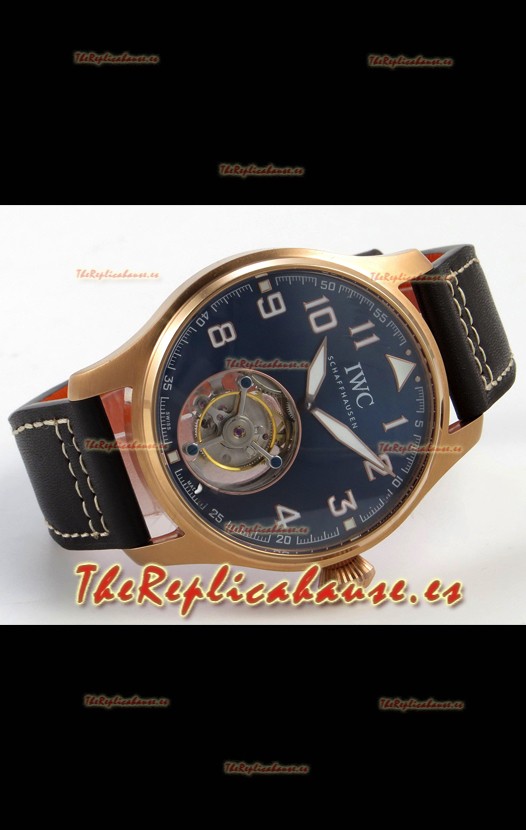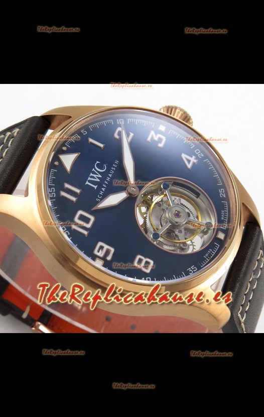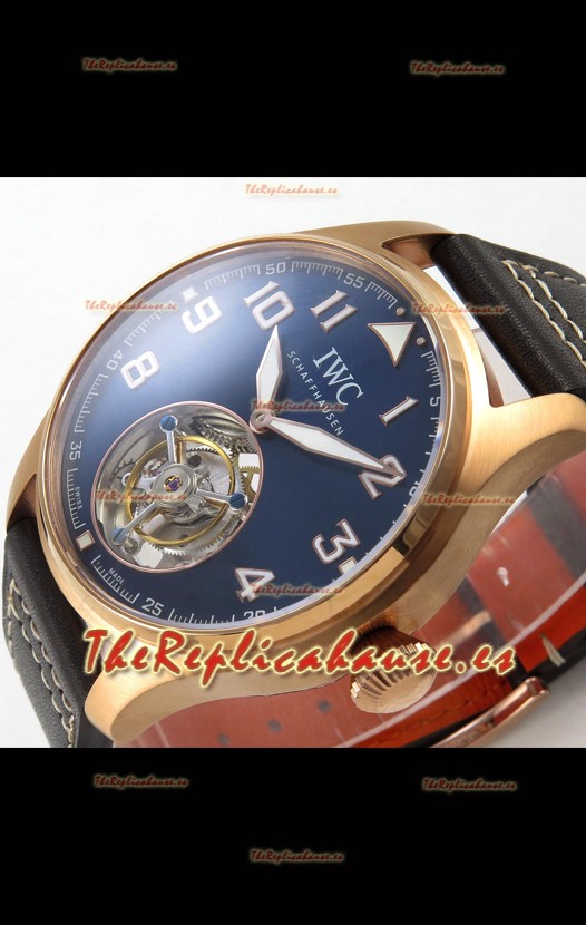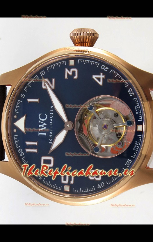 IWC Super Clone Portugese Hand-Wound Genuine Tourbillon Dial Azul Caja Oro Rosado Watch