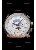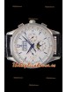 Dial Blanco con Indicador de Dia/Fecha a las 12 en Punto, Contador de Fecha, Dia de la Semana y contador de 12/23 Horas, con Indicador de Fase Lunar de Dia y Noche