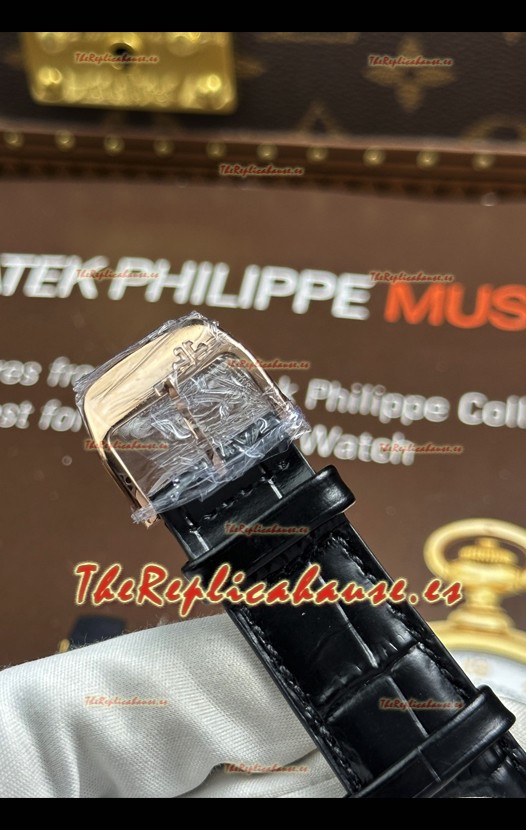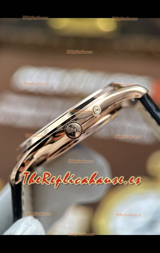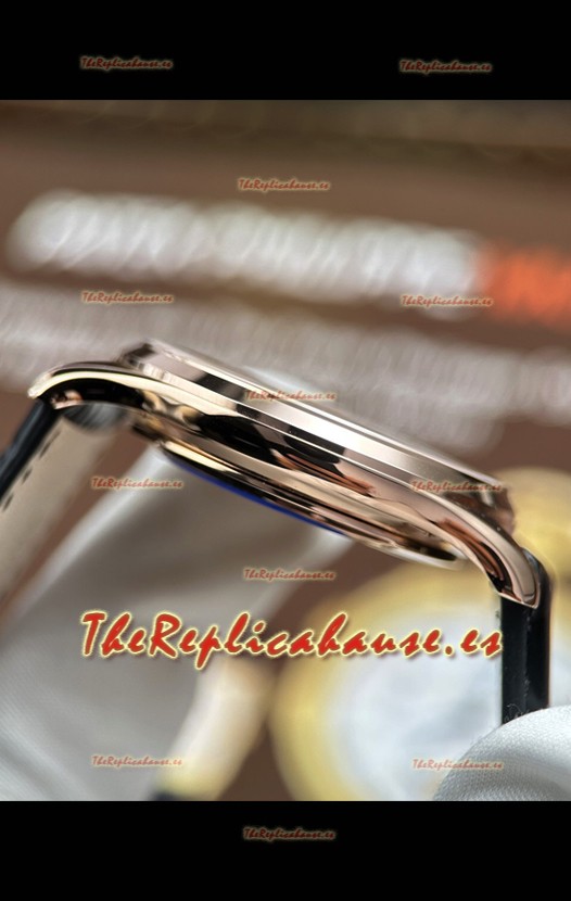 Caja Acero Inoxidable 904L Pulida chapada en Oro Rosado 18K, con Trasera de la Caja Abierta