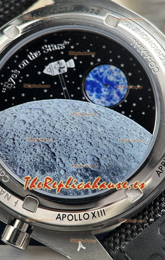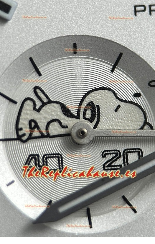 El Globo ubicado en la parte trasera giraría y completaría una revolución por minuto, el Snoopy en la nave espacial giraría en sentido antihorario junto con el segundero del cronógrafo una vez que se activa la función del cronógrafo.