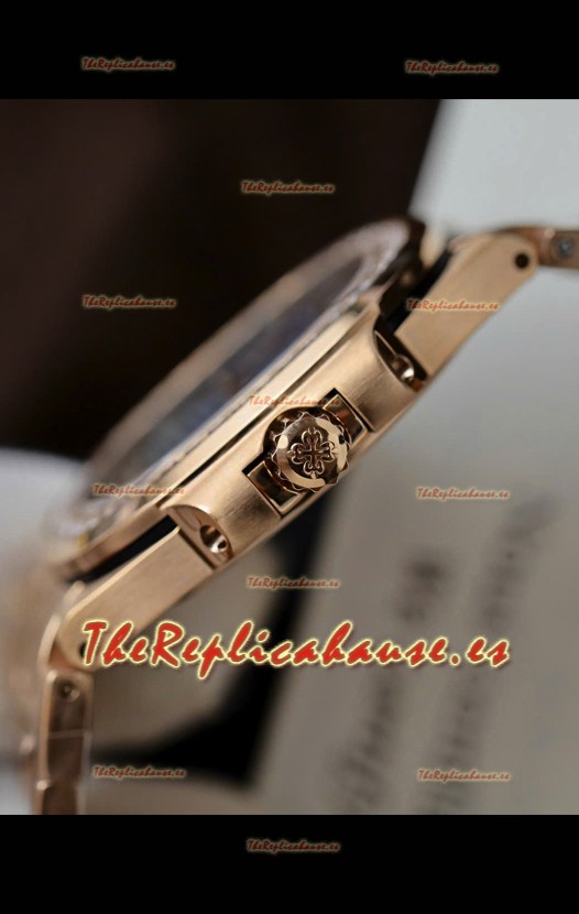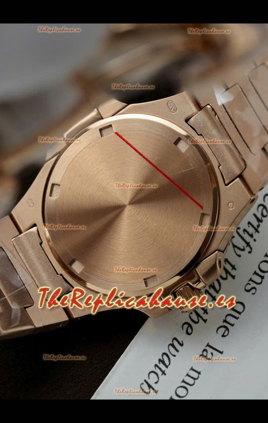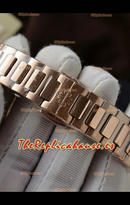 Correa de Acero Inoxidable 904L chapada en Oro Rosado 18K con Cierre Plegable de Acero completada con Marcas y grabados Patek Philippe.