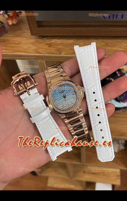 Patek Philippe 7010G Reloj Réplica Cuarto Suizo Gradient Blue y Dial Blanco