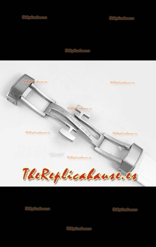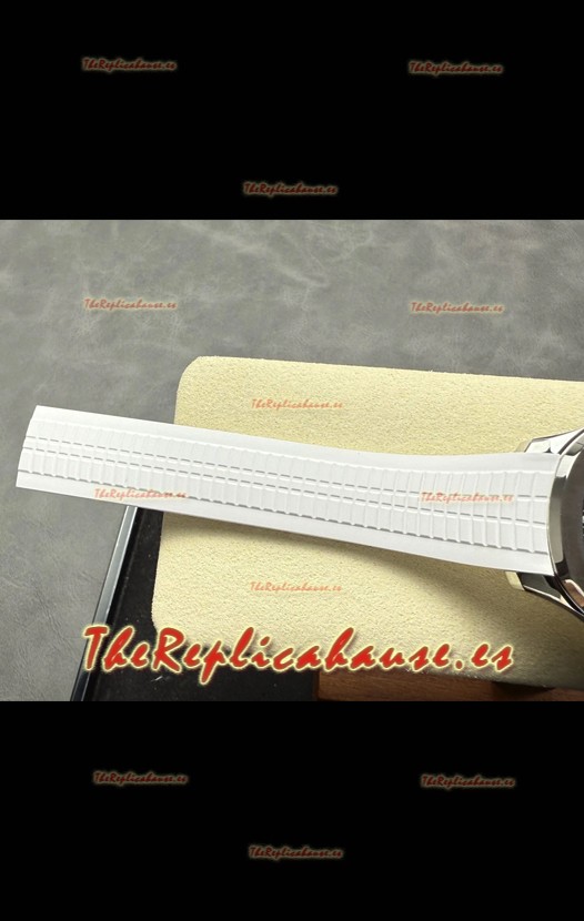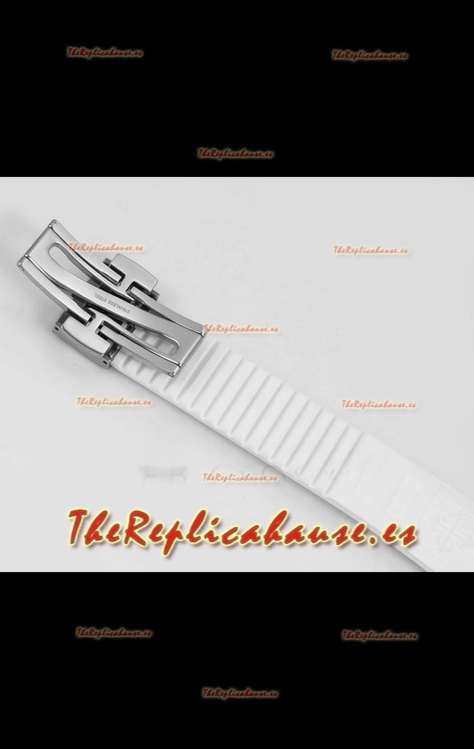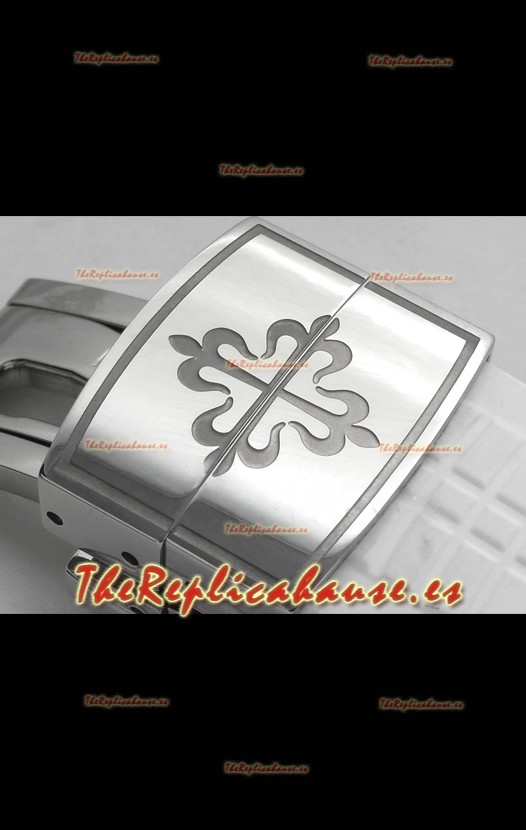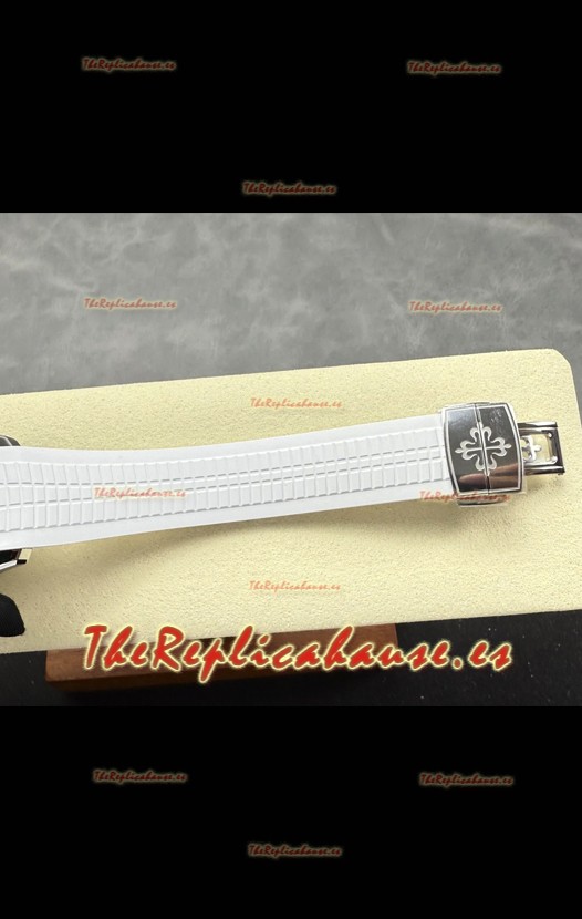 Correa de Goma Curvada con Cierre Plegable completada con Marcas y grabados Patek Philippe. Un Cierre Muy Actualizado para esta serie con marcas/grabados mucho más precisas.