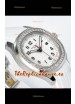Dial Blanco Texturizado con Ventana de Fecha. Bisel con Diamantes Corte Suizo