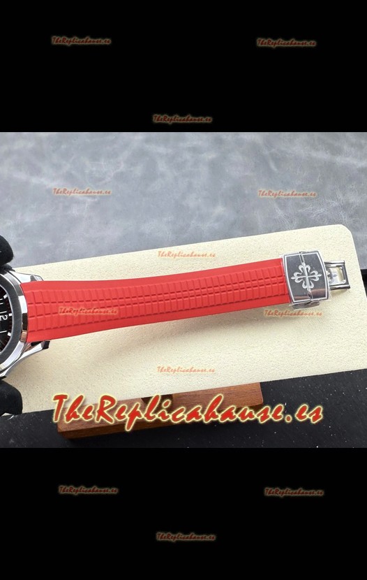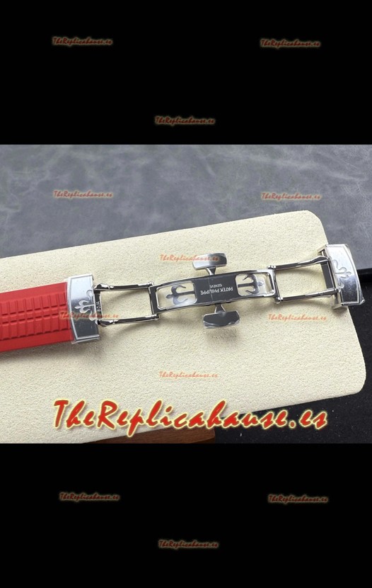 Correa de Goma Curvada con Cierre Plegable completada con Marcas y grabados Patek Philippe. Un Cierre Muy Actualizado para esta serie con marcas/grabados mucho más precisas.