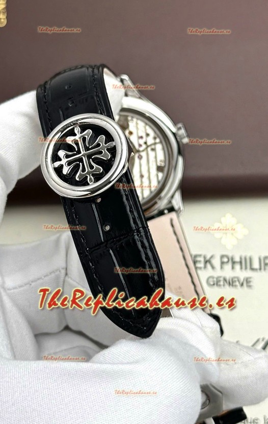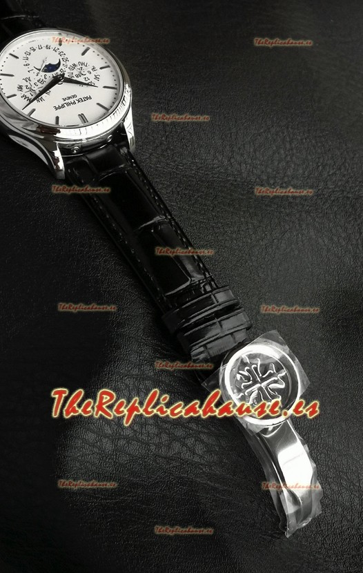 Genuina correa de Piel con Cierre Plegable de Acero completada con Marcas y grabados Patek Philippe.
