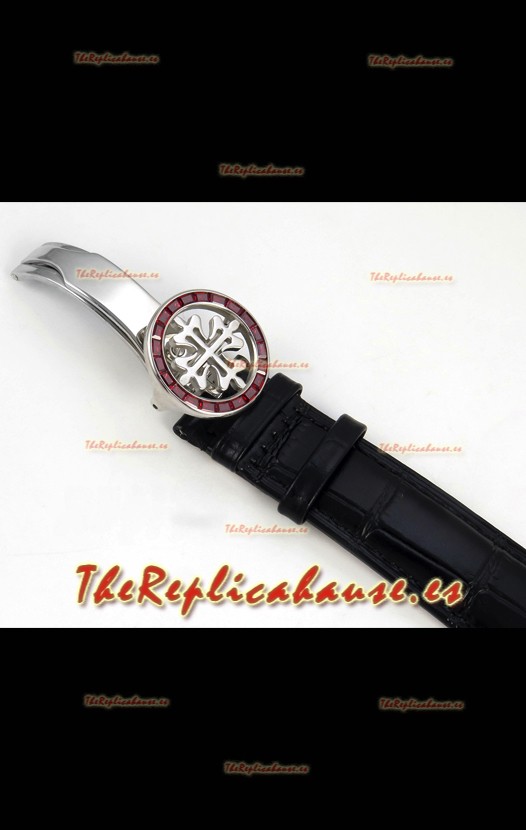 Genuina correa de Piel con Cierre Plegable de Acero completada con Marcas y grabados Patek Philippe.