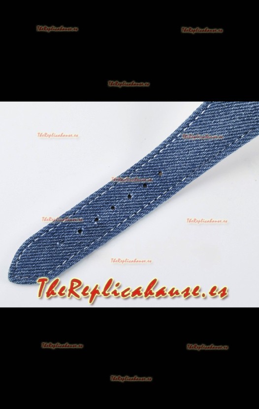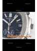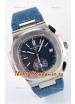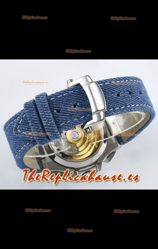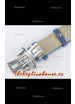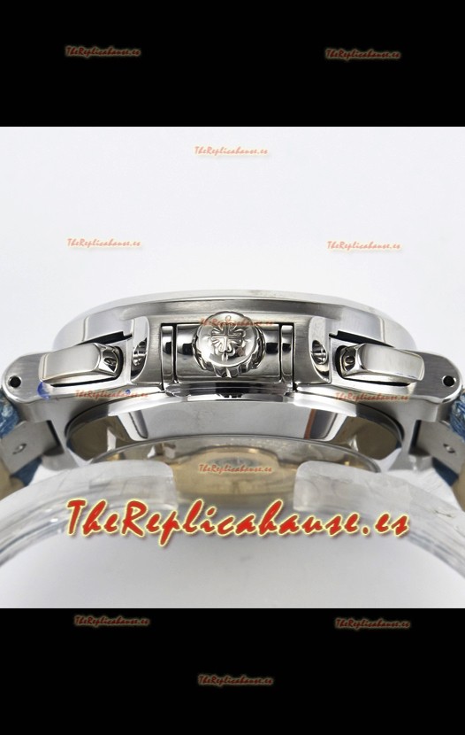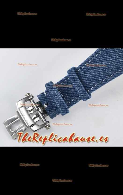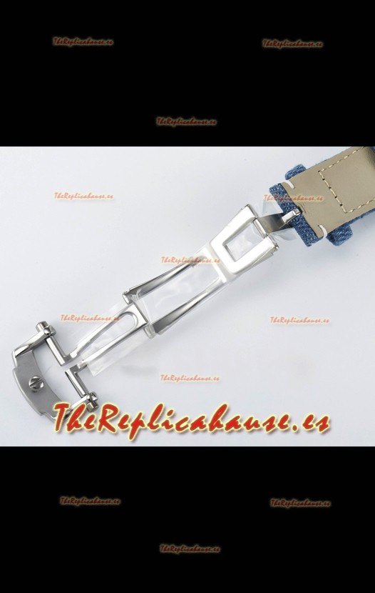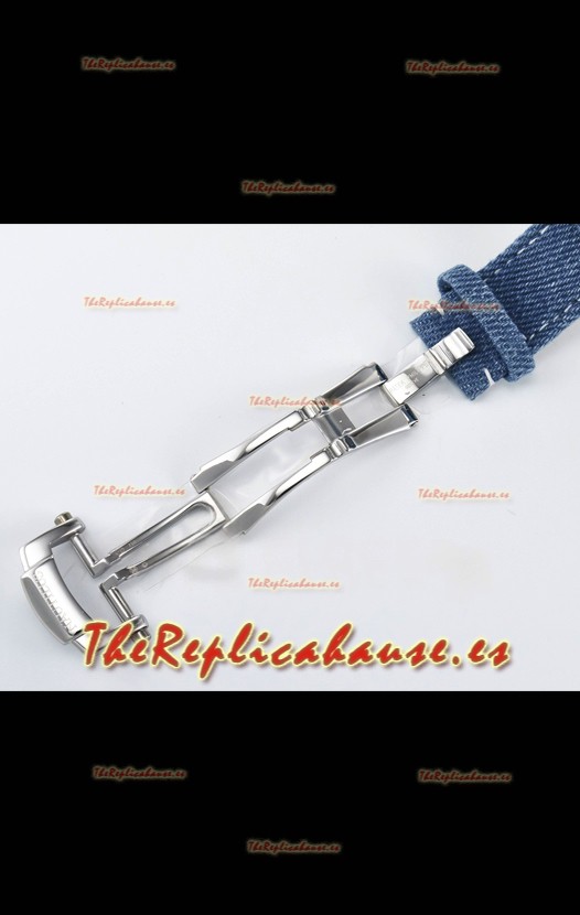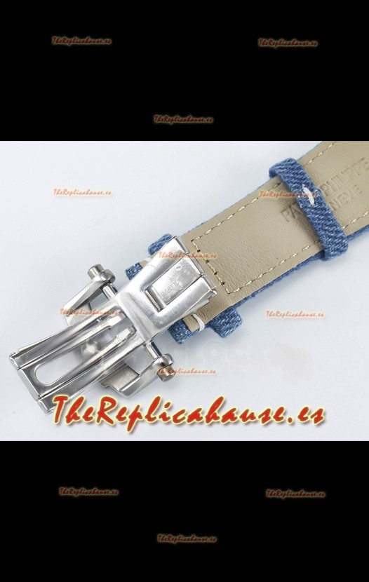 Genuina Correa Hibrida de Tela/Piel en Azul con Doble Cierre Plegable en Acero Inoxidable con Marcas/Grabados Patek Philippe