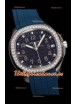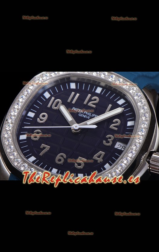 Dial Texturizado y Colorizado Azul con Ventana de Fecha a las 3 en Punto. Bisel de Diamantes