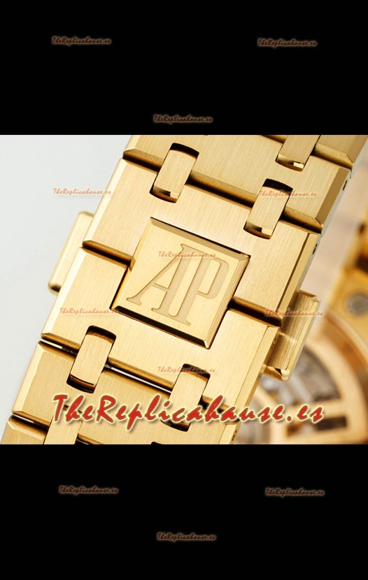 Correa Acero Inoxidable 904L chapada en Oro Amarillo Esmerilado completada con Marcas y Grabados AP como los originales y Cierre Plegable AP