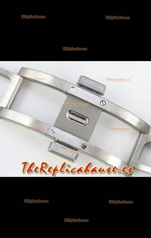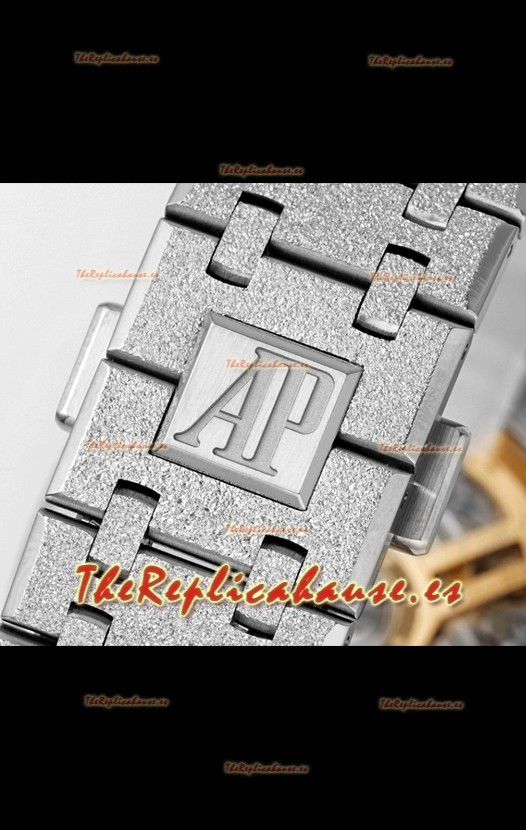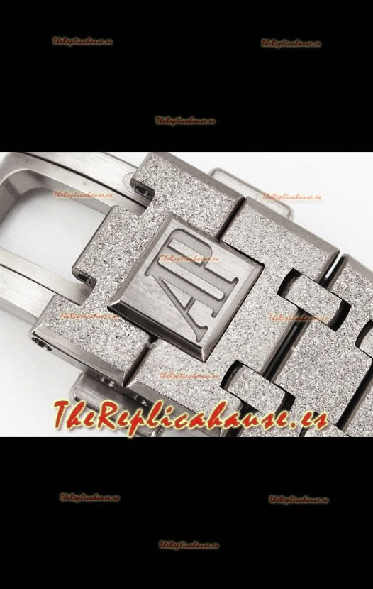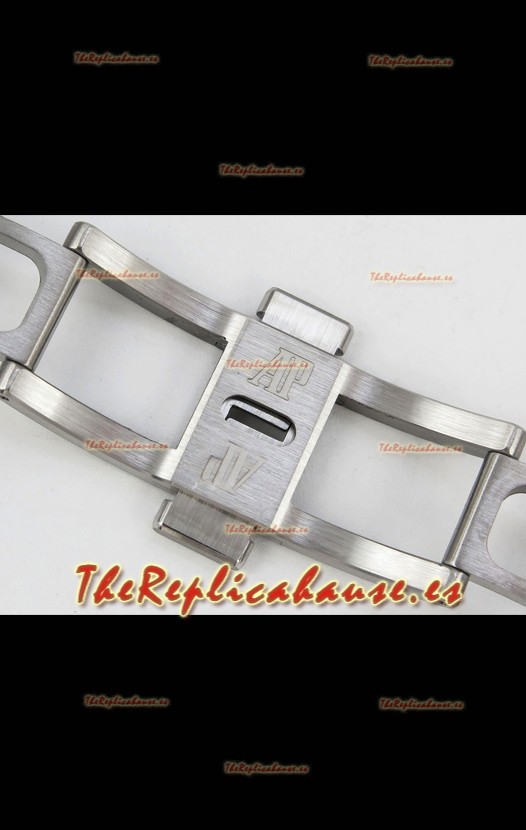 Correa Acero Inoxidable 904L chapada en Oro Blanco Esmerilado completada con Marcas y Grabados AP como los originales y Cierre Plegable AP