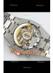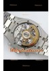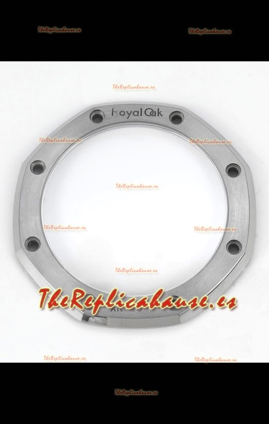 Caja de Acero 904L chapada en Oro Blanco Esmerilado completada con Marcas y Grabados AP.