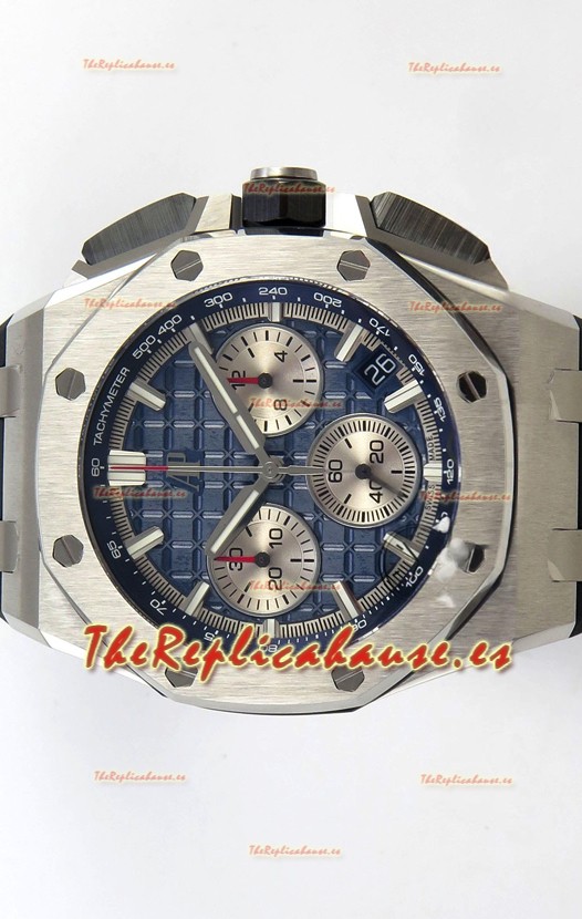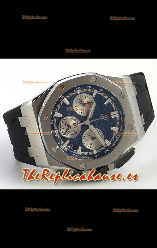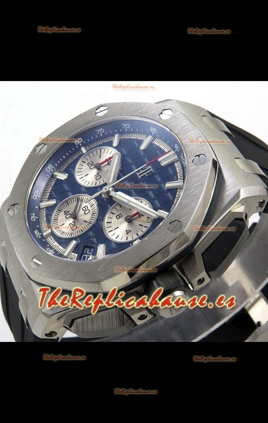 Disposición de la Maquinaria idéntica a la del Movimiento Audemars Piguet 3126 Calibre utilizado en los Relojes Auténticos Audemars Piguet Offshore, fabricado con la arquitectura del Genuino movimiento Suizo 7753, con cronómetro funcional como el original
