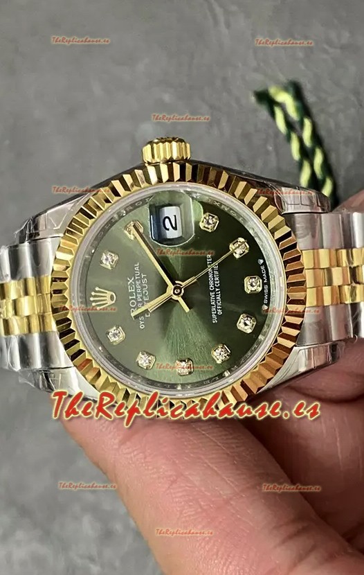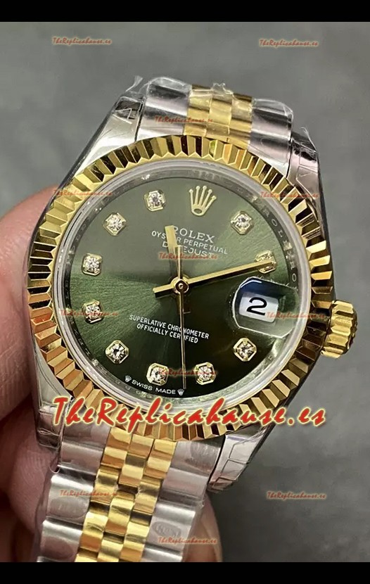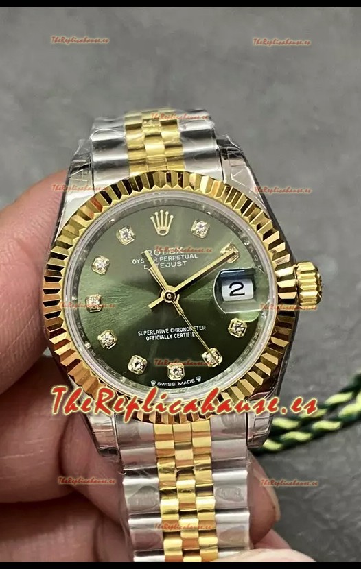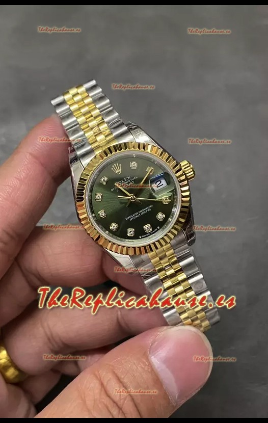 Reloj Rolex Datejust Super Clone con Dial Verde Dos Tonos Oro Amarillo 28MM