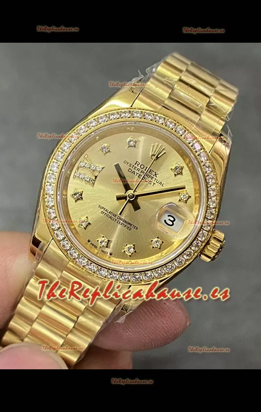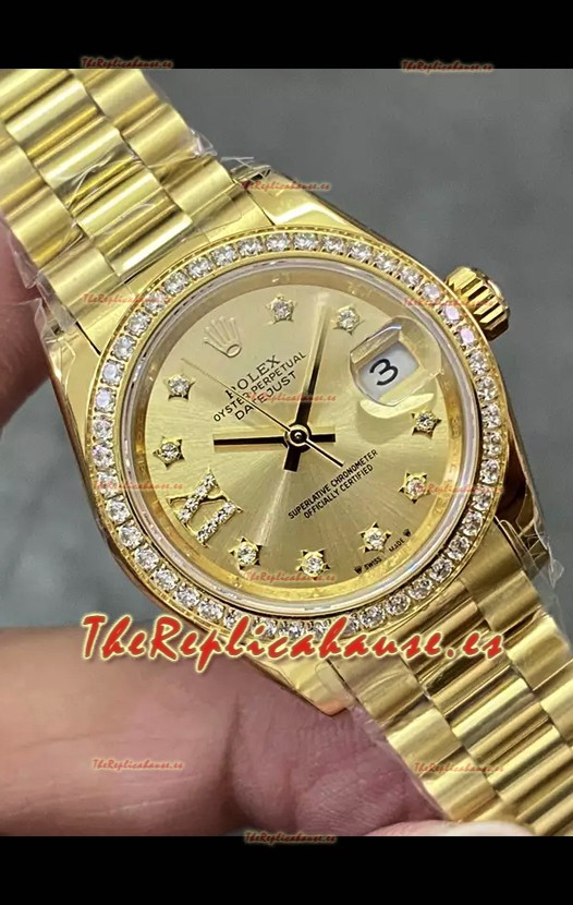 Reloj Rolex Datejust Super Clone Dial Dorado Caja Oro Amarillo 28MM