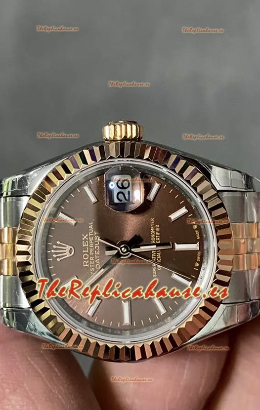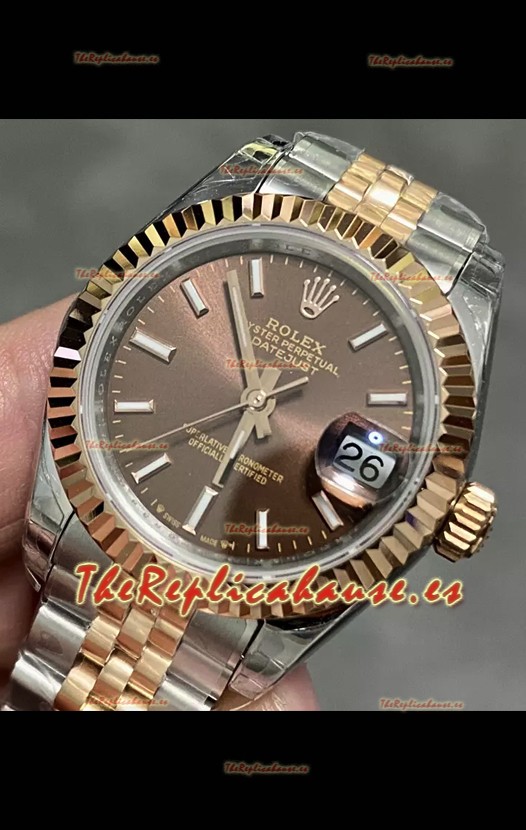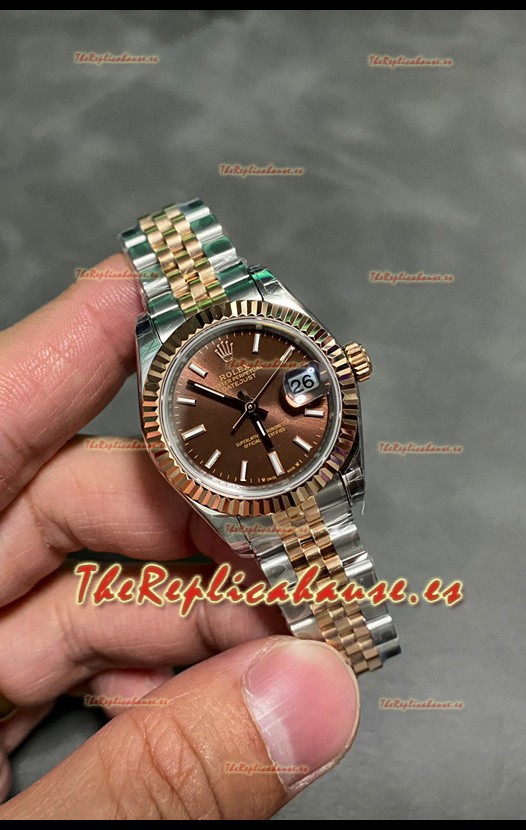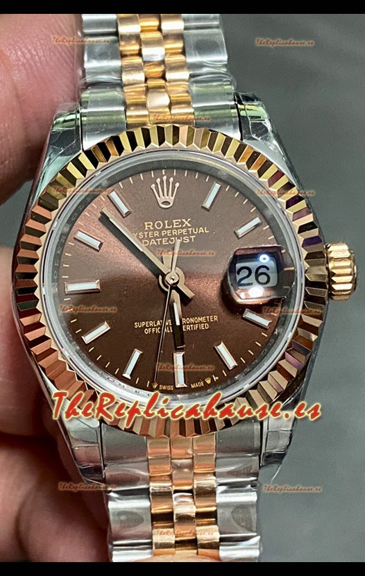 Reloj Rolex Datejust Super Clone Dial Marrón Dos Tonos Oro Rosado 28MM