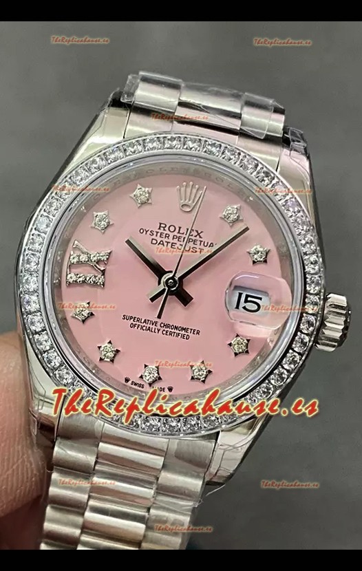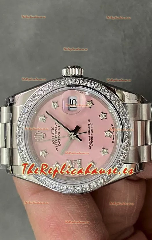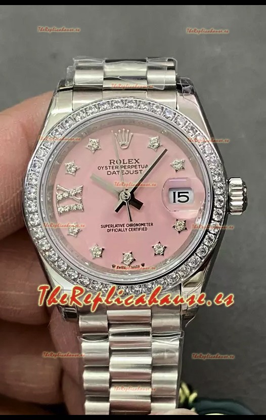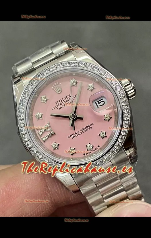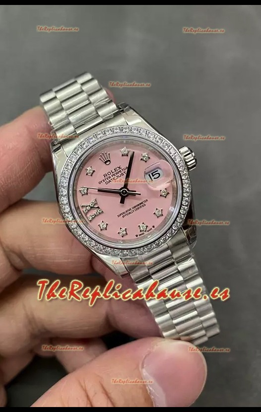 Reloj Rolex Datejust Super Clone Dial Rosado Caja Acero 28MM