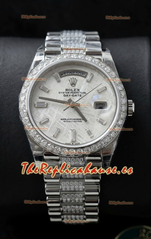 Reloj Rolex Day Date Presidential Acero Inoxidable Dial Meteorito 40MM - Calidad Espejo 1:1