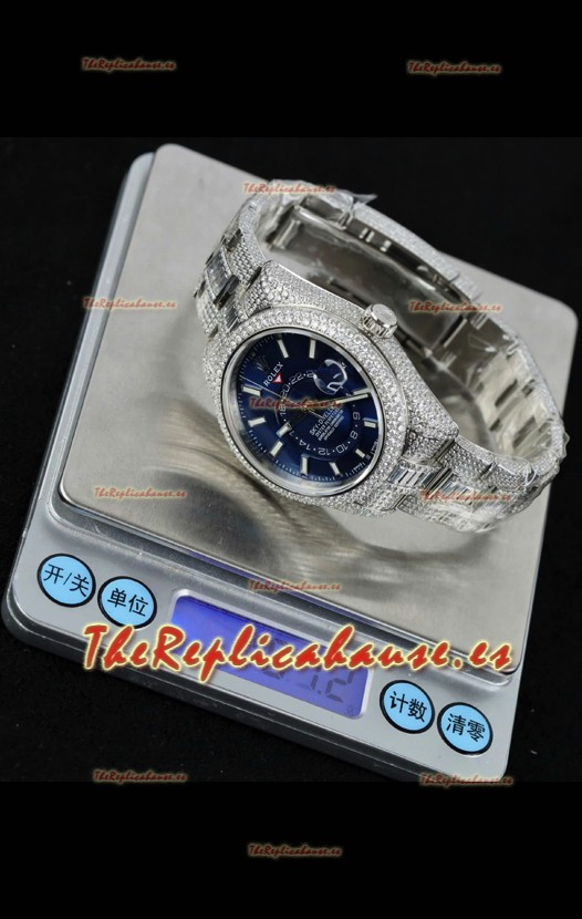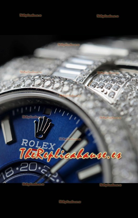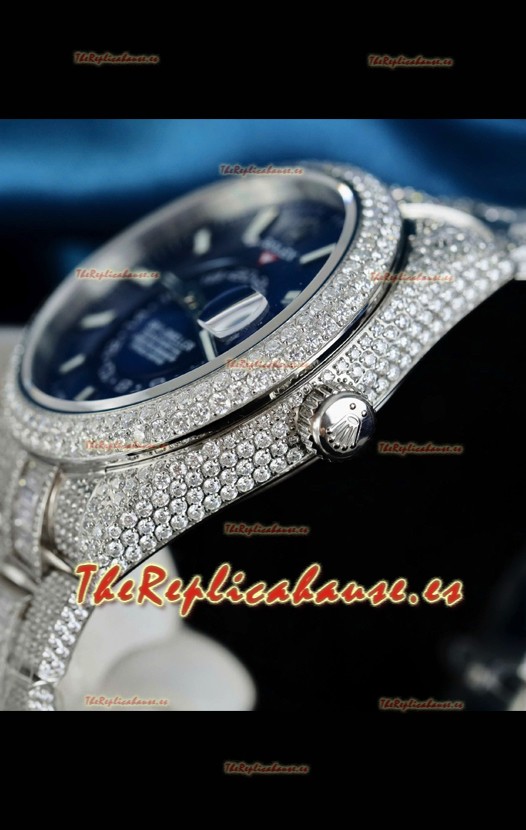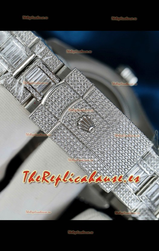 Caja Acero Inoxidable 904L con Moissanitas Incrustadas y Trasera de la Caja Solida completada con Marcas y Grabados Rolex