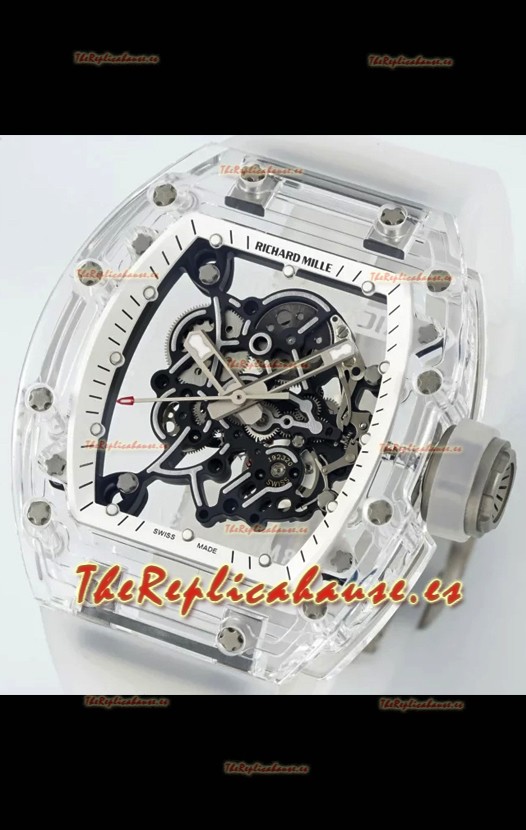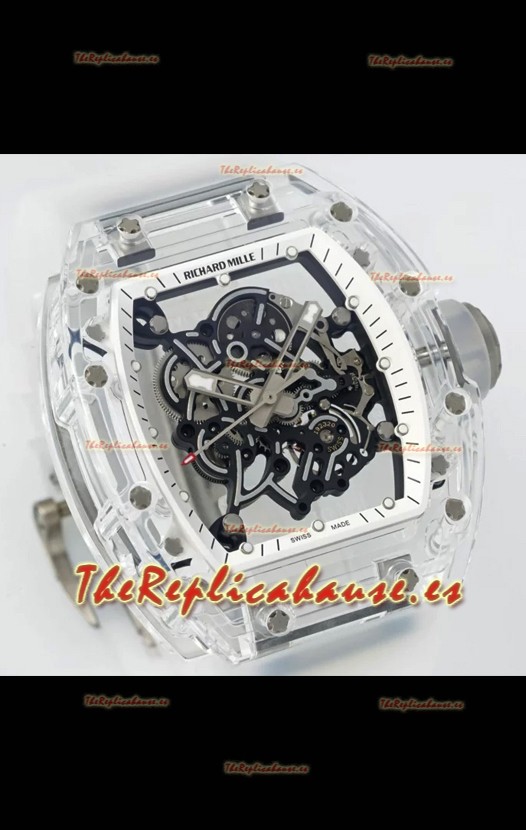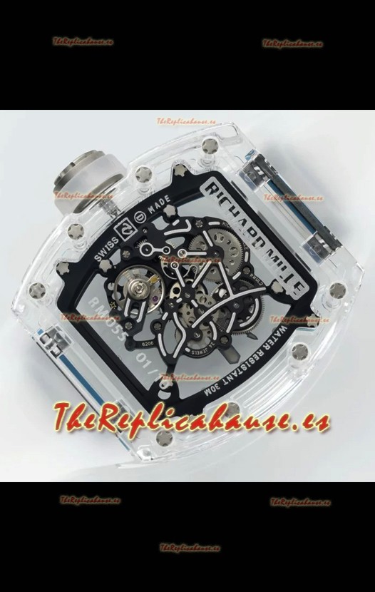 Richard Mille RM055 Caja con Zafiros Transparentes y Tourbillon Genuino Reloj Super Clone