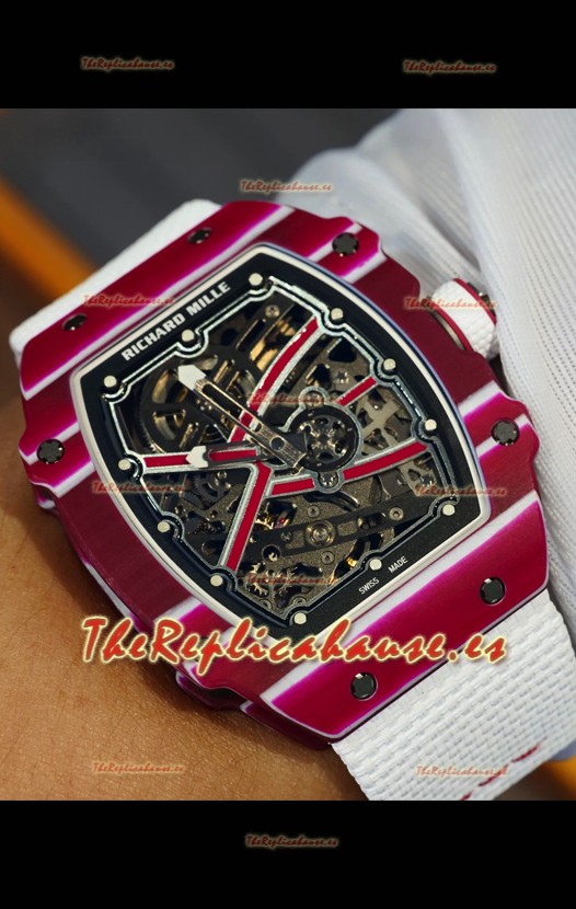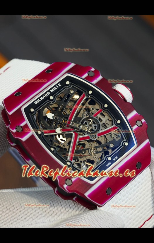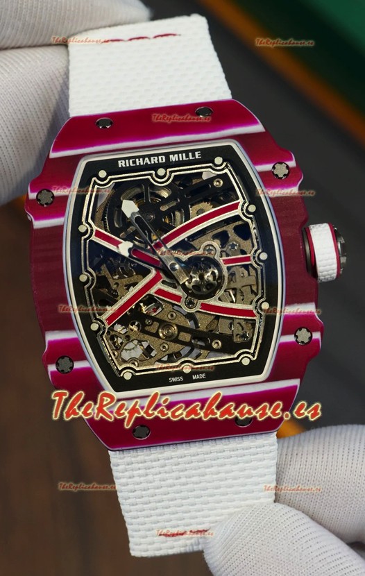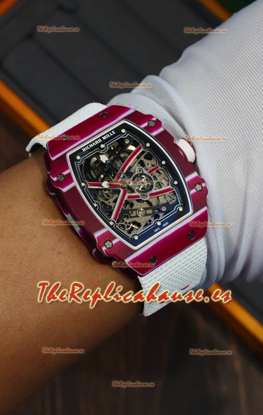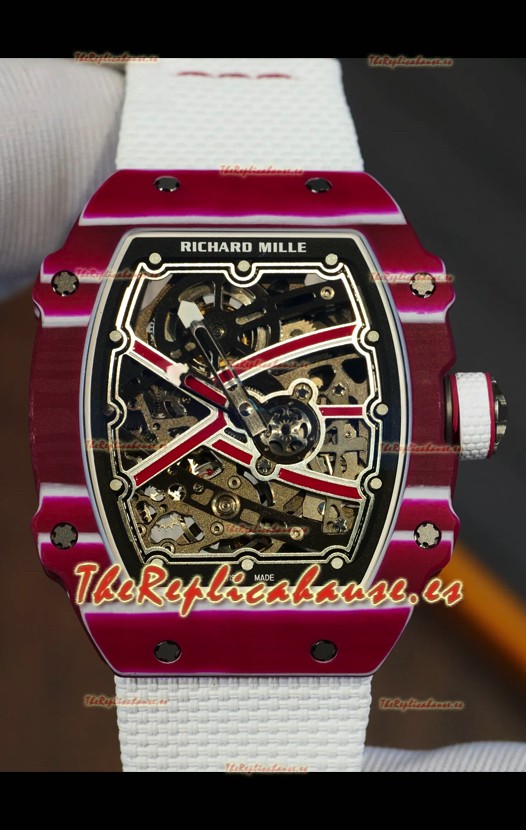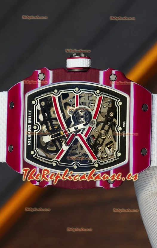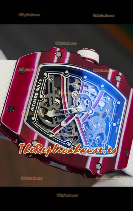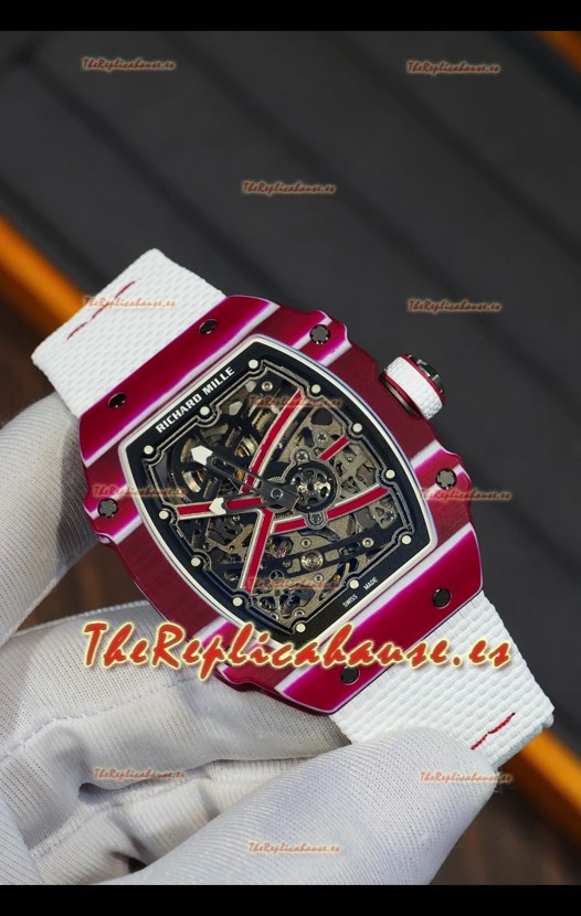 Richard Mille Super Clone RM67-02 Mutaz Barshim Carbono Rojo TPT 27 Gramos Reloj Correa Blanca