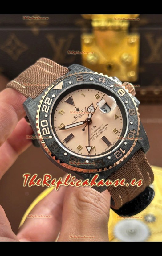 Rolex GMT Masters DiW Black Caja de Carbono Reloj Réplica Suizo Dial Gris Beige