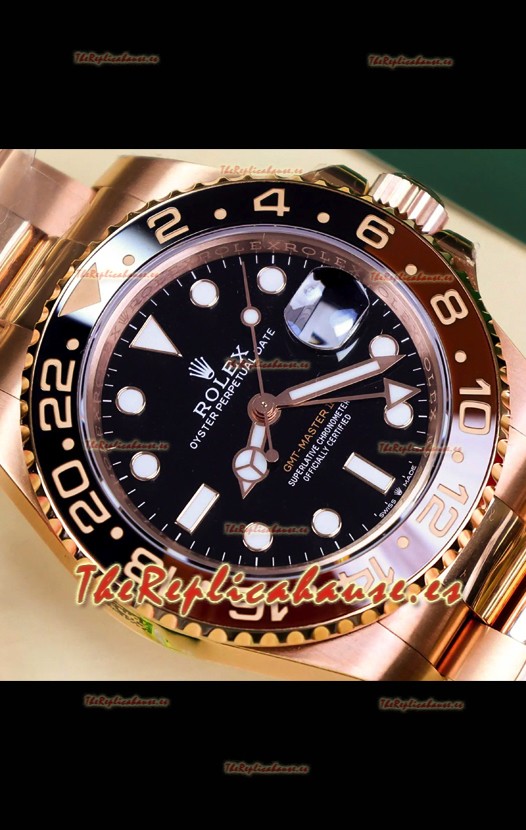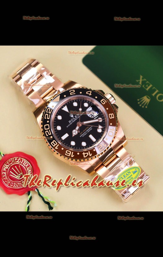 El mejor Rolex GMT replicado hasta la fecha. El primer modelo de Rolex en adoptar una Caja y Correa de Acero 904L, que es el mismo acero usado por Rolex