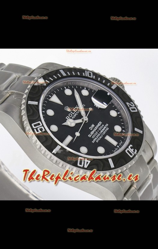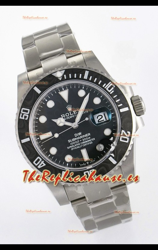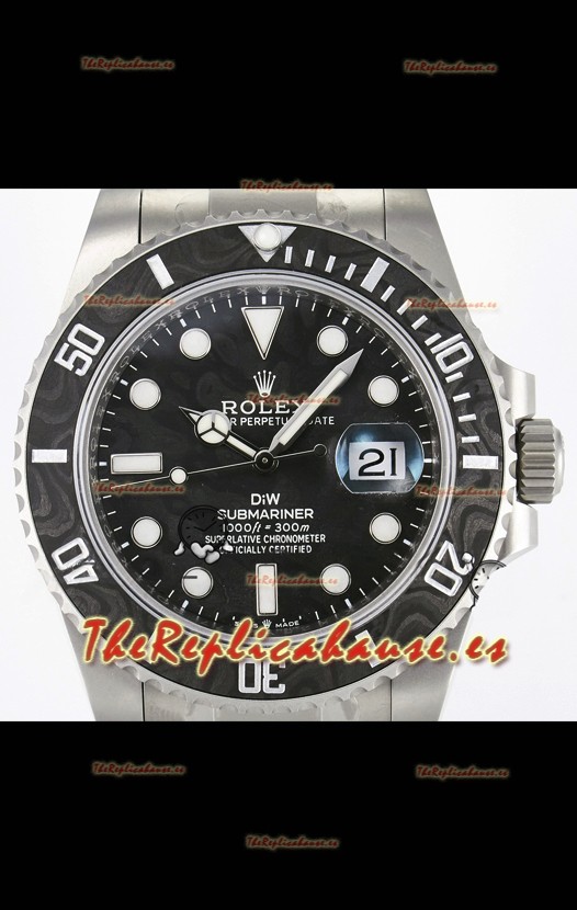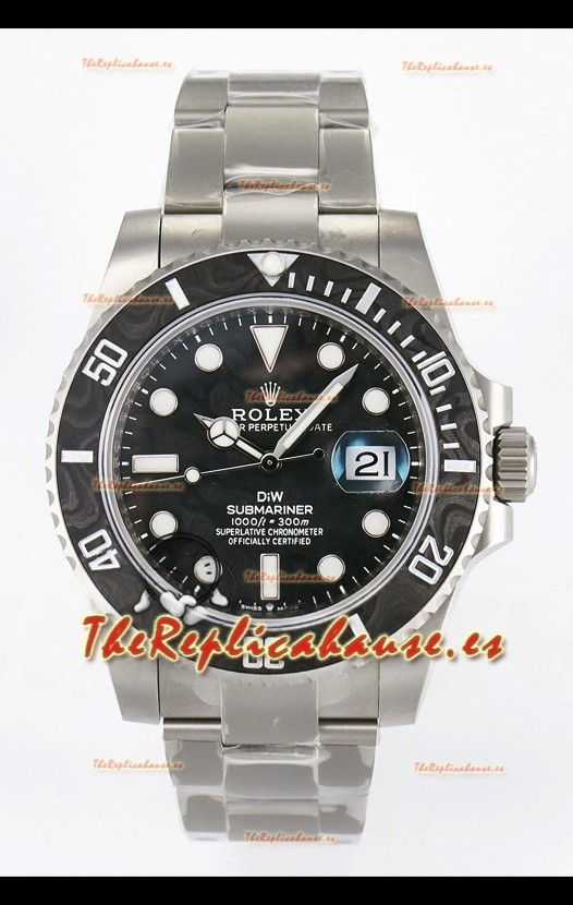 Rolex Submariner DiW, Caja de Acero con Acabado Arenado y Bisel de Fibra de Carbono, Dial Negro.