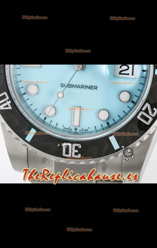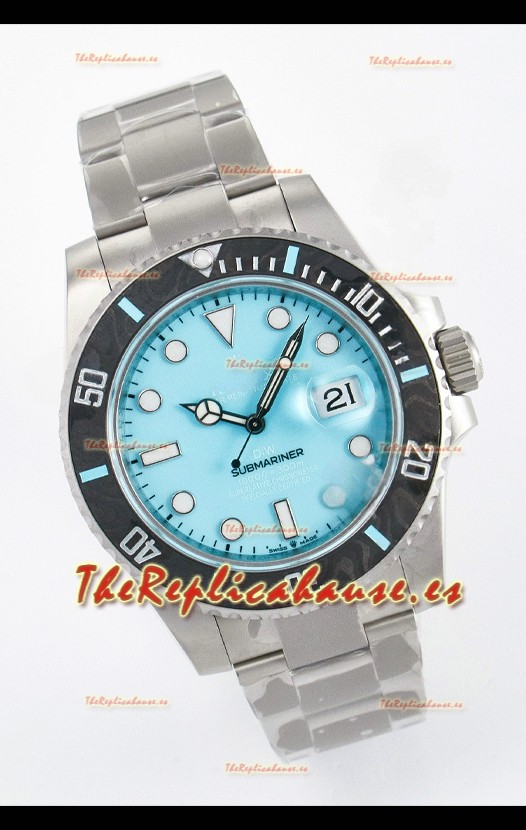 Rolex Submariner DiW con Caja de Acero Arenada y Bisel de Fibra de Carbono, Dial Tiffany Azul.