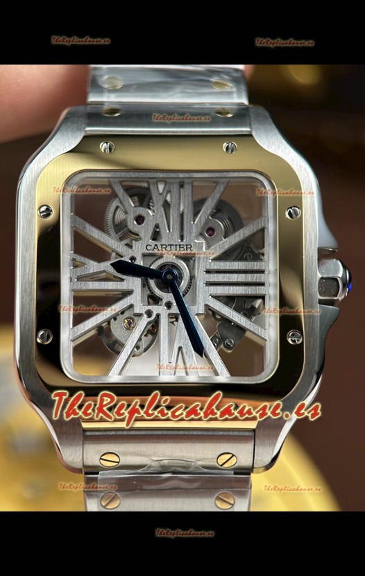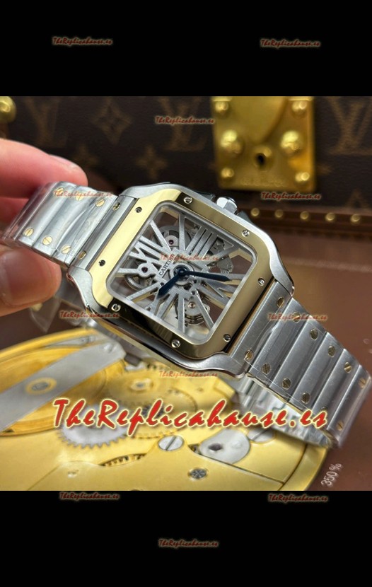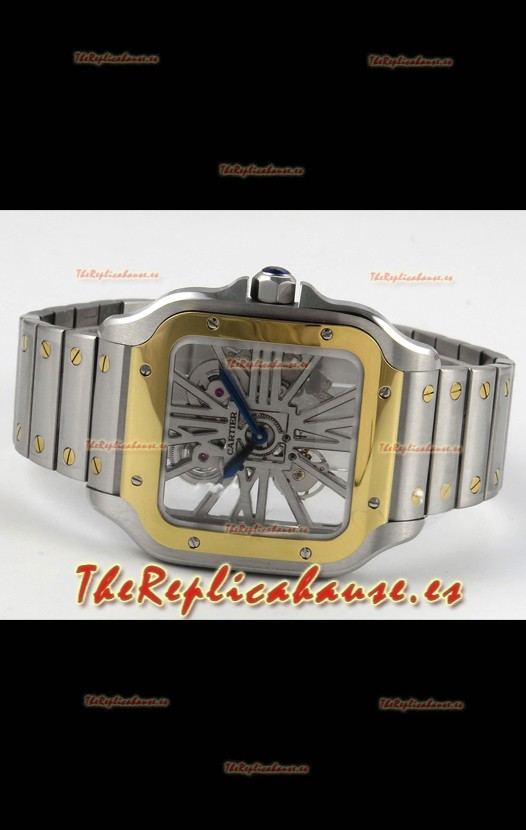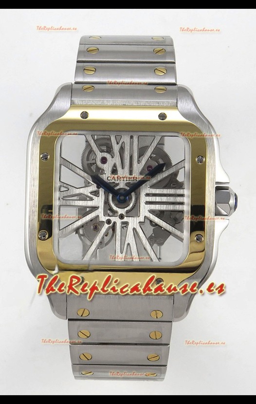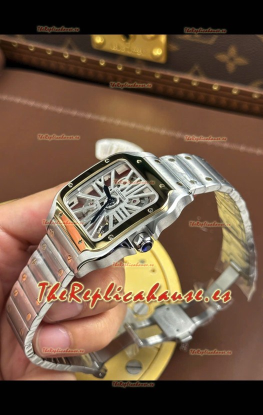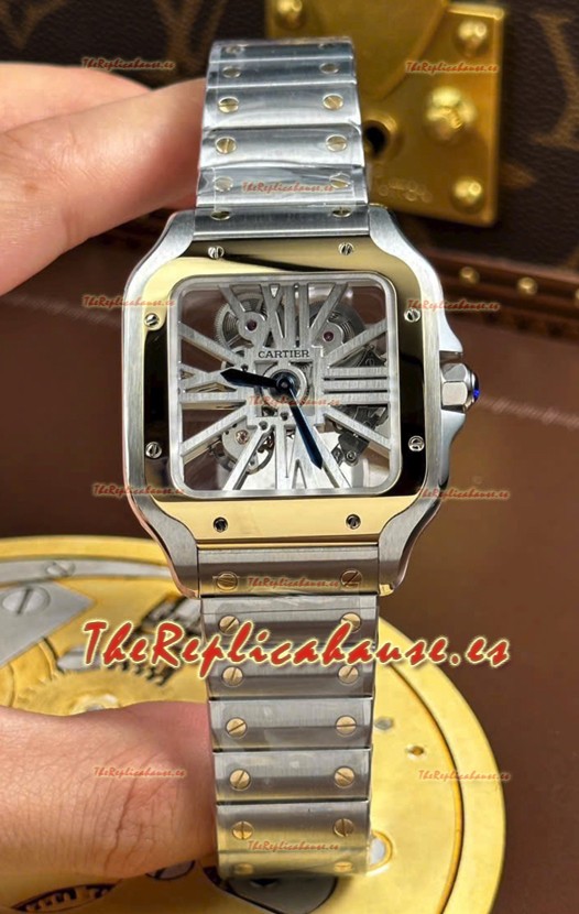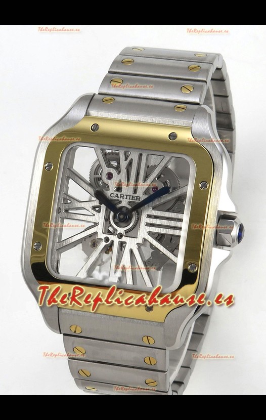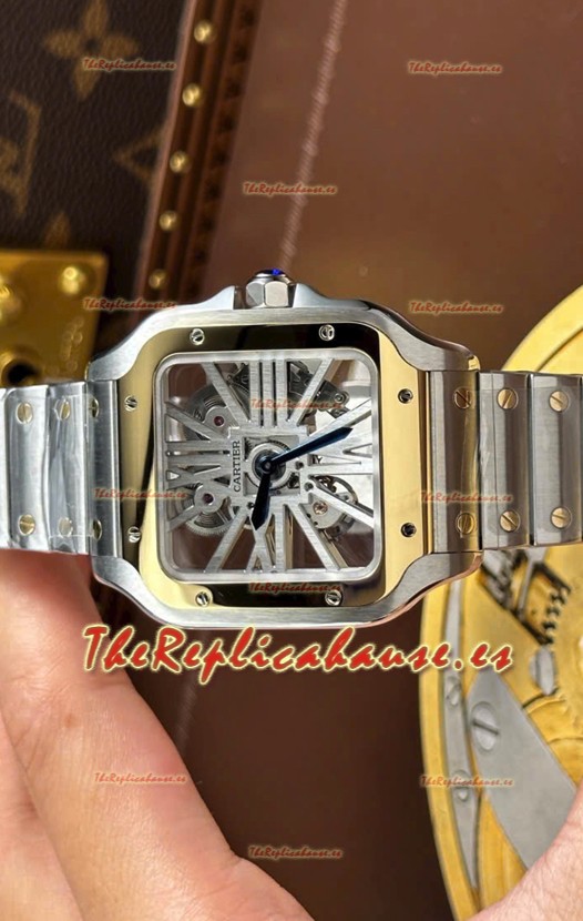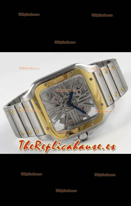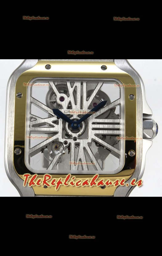 Santos De Cartier Reloj Super Clone en Dial Skeleton Caja Dos Tonos