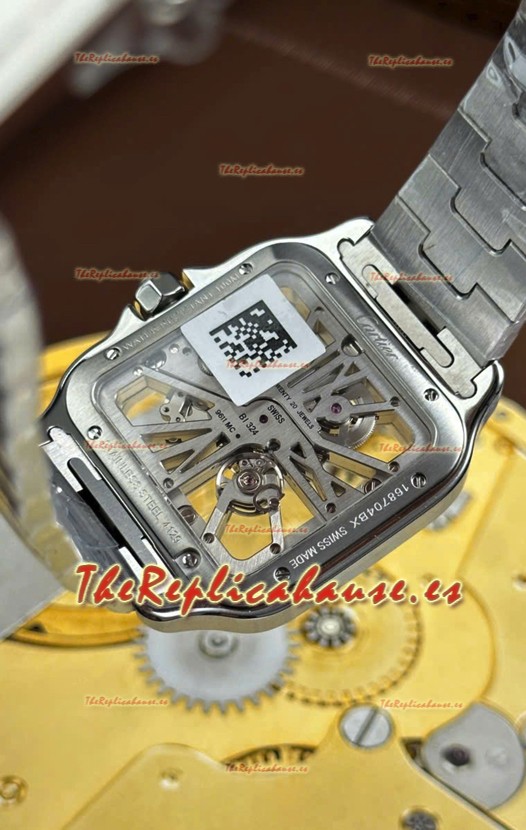 Trasera de la Caja Skeleton con Marcas y Grabados Completos Cartier.