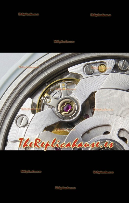 Genuino Movimiento Cal.4130 construido desde cero sin modificaciones, Platos y Rotores chapados en Platino como en el Original. El mismo Movimiento que encuentras en los Relojes Rolex Daytona