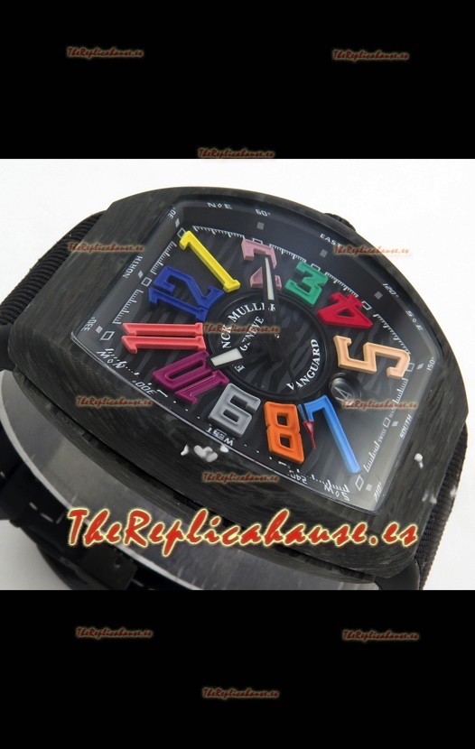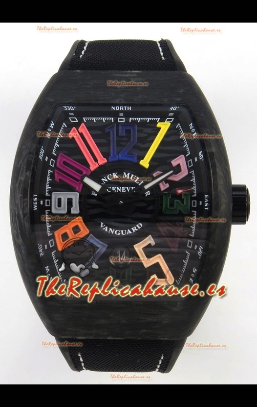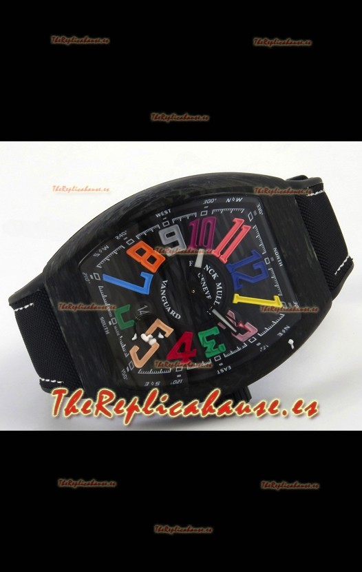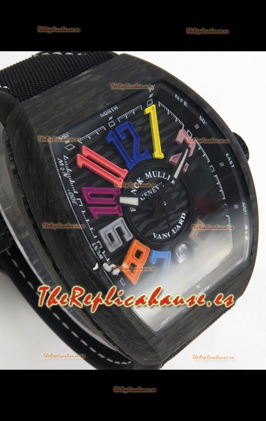 Franck Muller Super Clone Vanguard V45 Racing Carbono con Correa de Nylon