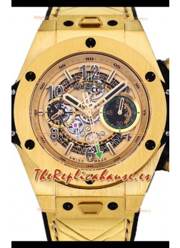 Cinco años después de lo que bien podría llamarse el relanzamiento de Swiss Replica Hublot, Jean-Claude Biver cumplió un sueño: a principios de 2009, la empresa se __trasladó a su propia fábrica de 6.000 metros cuadrados en el barrio industrial de Nyon. El movimiento actúa como un presagio de la primera calibres movimiento autónomo de la compañía, que está previsto que entre en producción en serie muy pronto. La actual crisis económica ha puesto un freno a este ambicioso plan sólo un poco: a finales de 2009, 150 empleados están programados para terminar poblando la mitad de los talleres modernos, llenos de luz. El área restante se reserva para los bancos siguen siendo libres para futuras incorporaciones al equipo de la relojería como well.In 2008, Hublot Replica presentó su propio diseño de movimiento, una versión ligeramente modificada del tratado y probado calibre cronógrafo Valjoux 7750 cuya protección mediante patente expiró después treinta años.