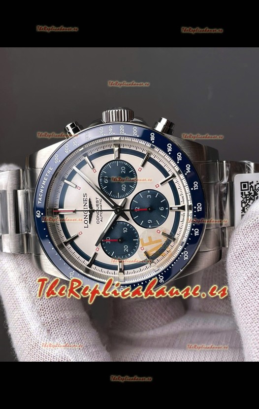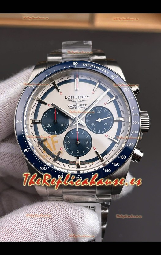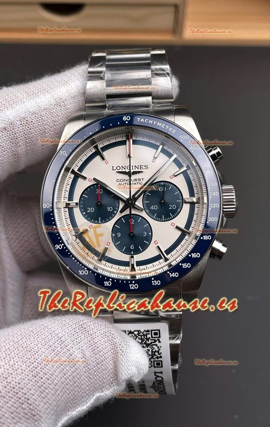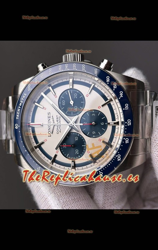 Longines Conquest Cronógrafo Dial Blanco Reloj Automático en Caja Acero