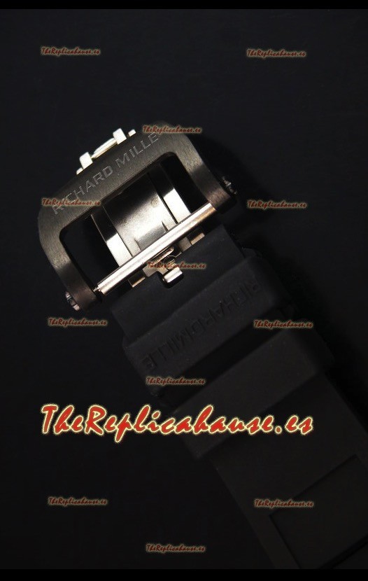 Correa de Goma color Negro con Cierre de Acero Plegable completado con Marcas y Grabados Richard Mile
