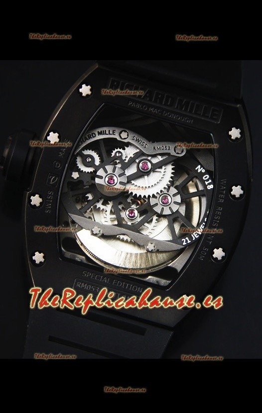 Richard Mille RM053 Tourbillon Pablo Mac Donough Reloj Replica Suizo Caja con Revestimiento PVD Correa Negra