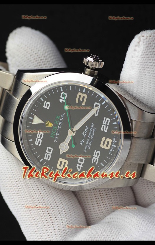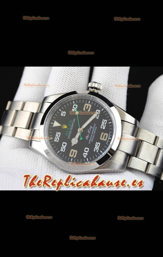 Rolex Air King Movimiento Japonés Reloj Réplica en Acero Inoxidable Dial Acero Negro 40MM