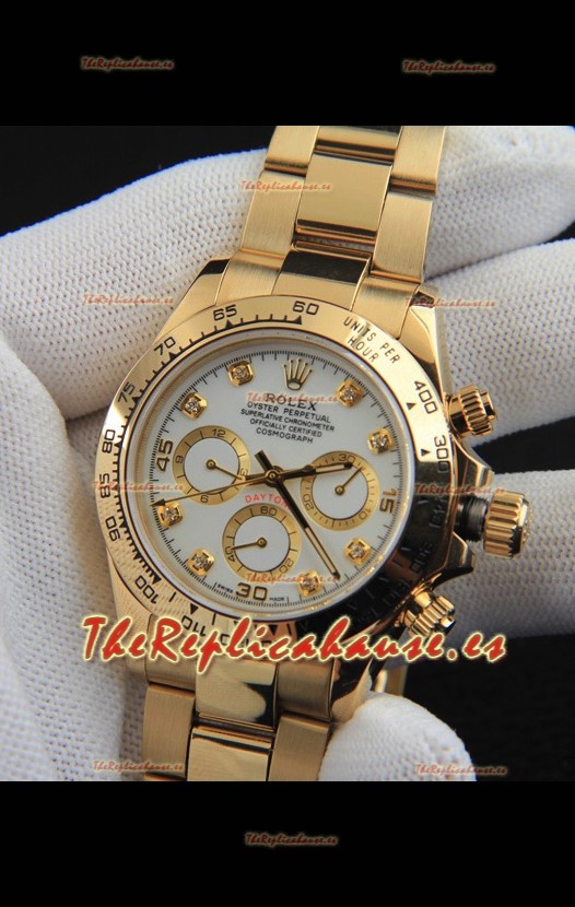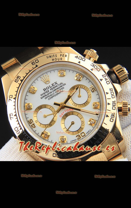 Rolex Daytona Movimiento Japonés Caja de Oro Reloj Réplica en Dial Blanco