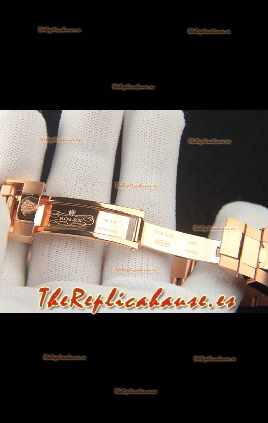 Caja Acero Inoxidable Solido 904L chapada en Oro 18K con Marcadores y Grabados Rolex