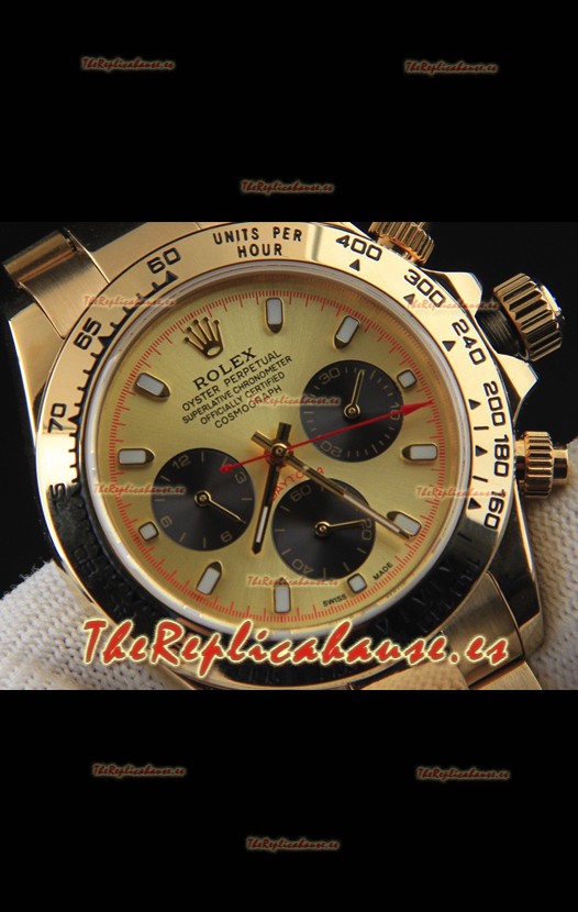 Rolex Daytona Movimiento Japonés Caja de Oro Reloj Réplica en Dial Dorado