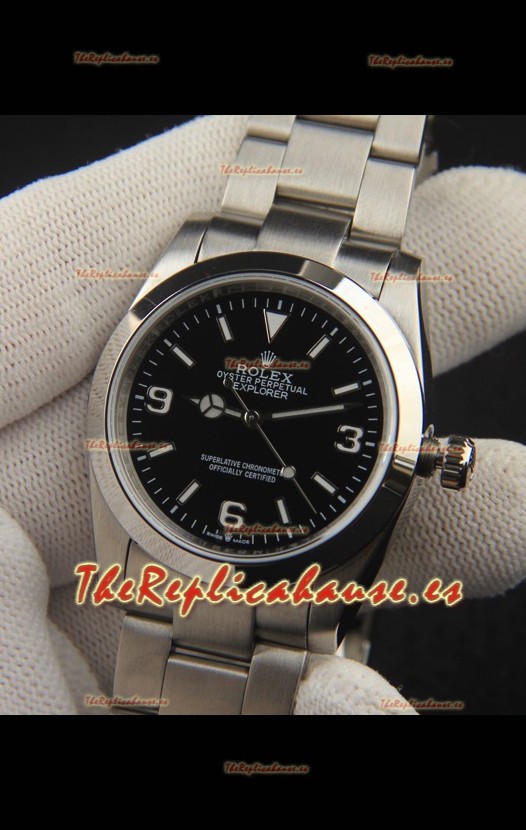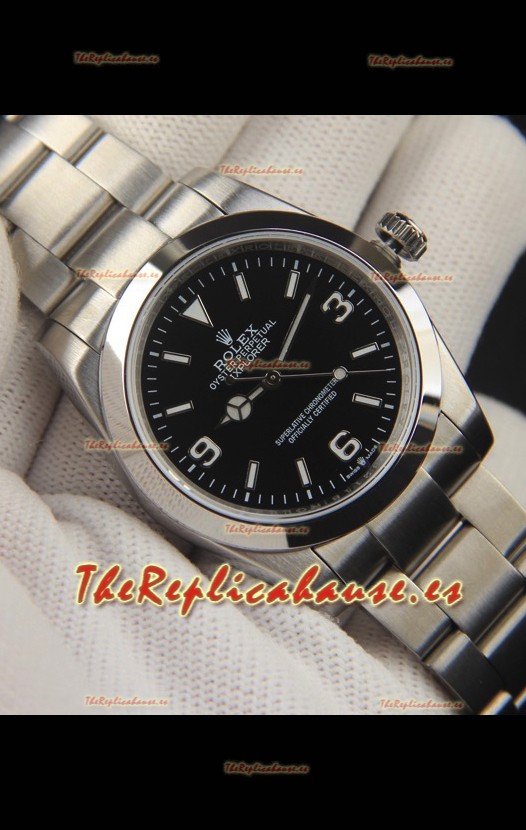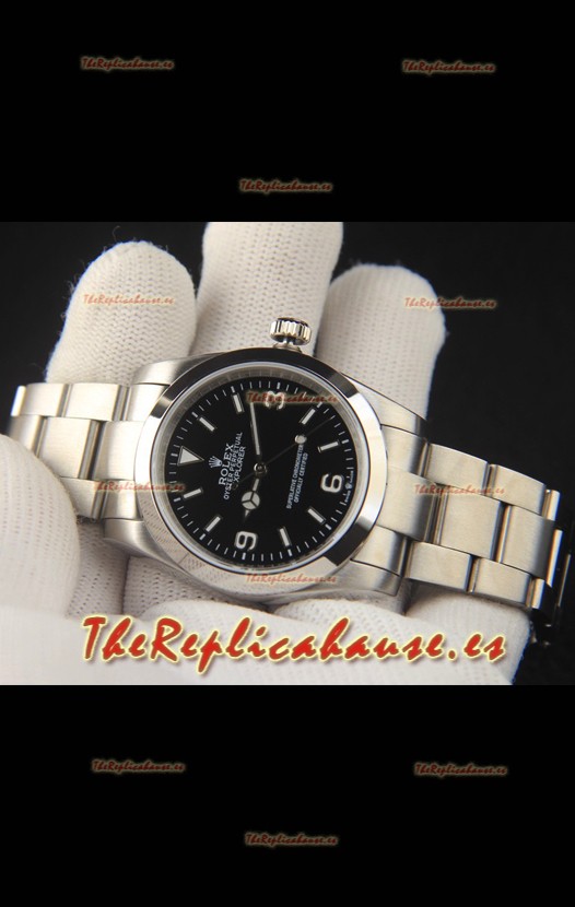 Rolex Explorer I Movimiento Japonés Reloj Réplica en Acero Inoxidable Dial Acero Negro 36MM
