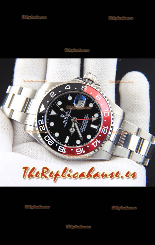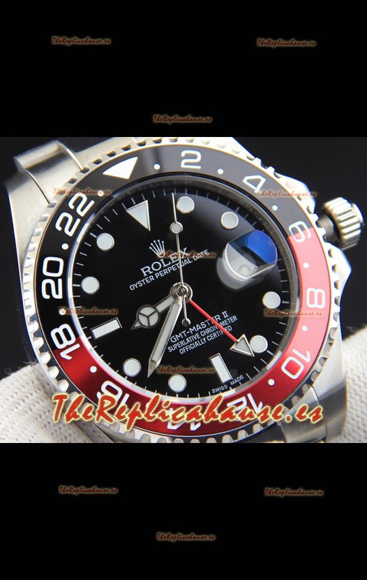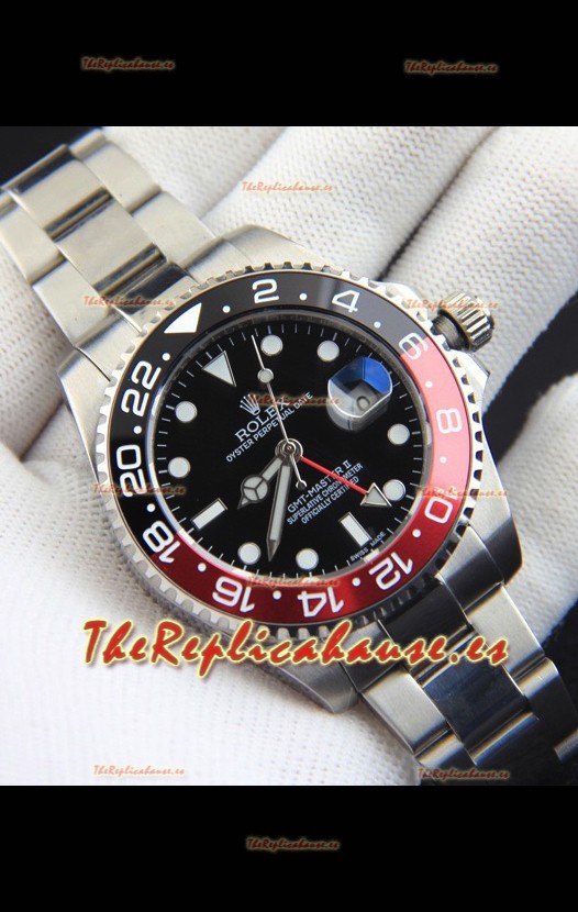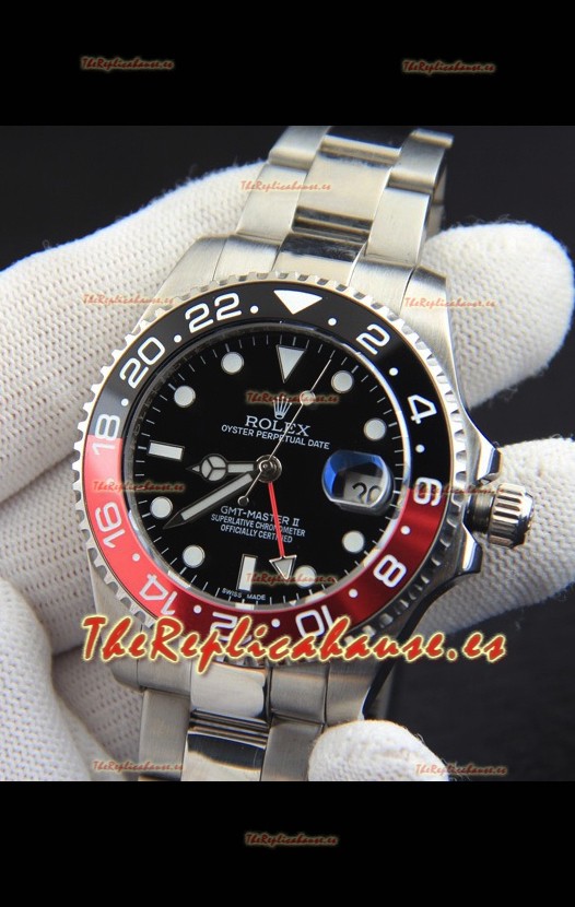Rolex GMT Masters II Movimiento Japonés Reloj Réplica Caja Acero Dial Negro
