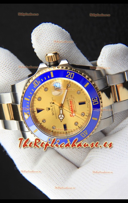 Rolex Submariner Japanese Reloj Réplica en Dos Tonos Caja Oro Amarillo Dial Dorado