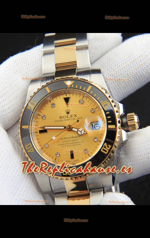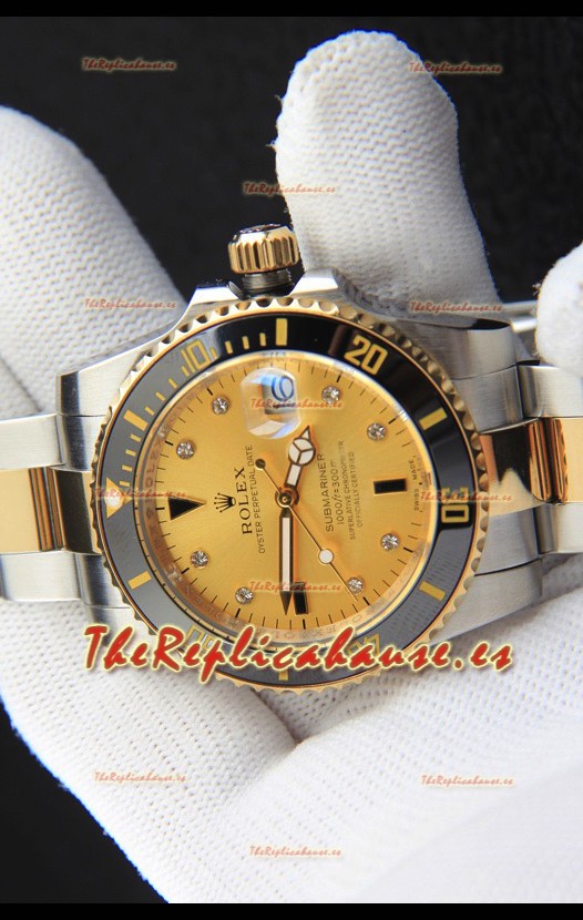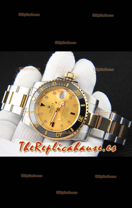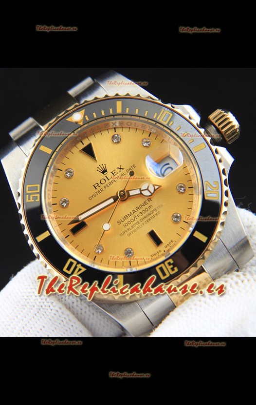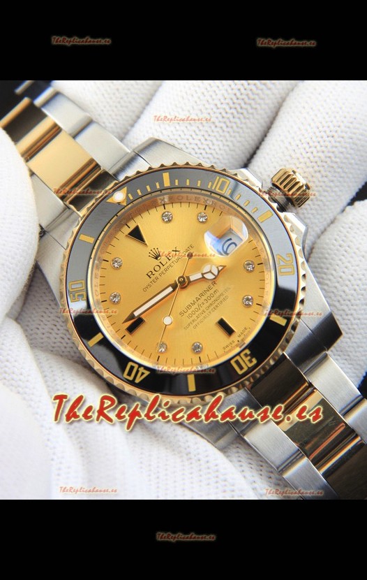 Rolex Submariner Japanese Reloj Réplica en Dos Tonos Caja Oro Amarillo Dial Dorado
