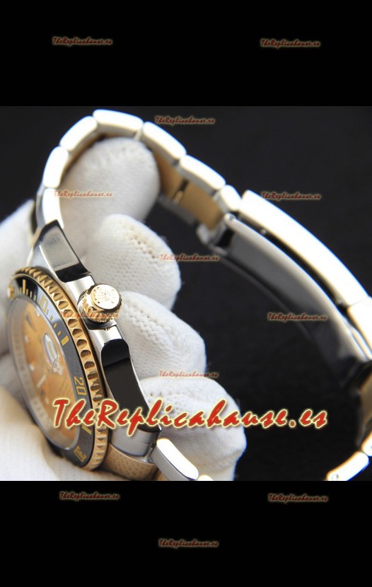 Caja Acero Inoxidable Solido 904L chapada en Oro Amarillo 18K Dos Tonos, Bisel de Cerámica con Trasera de la Caja Sólida