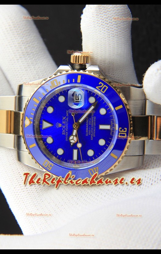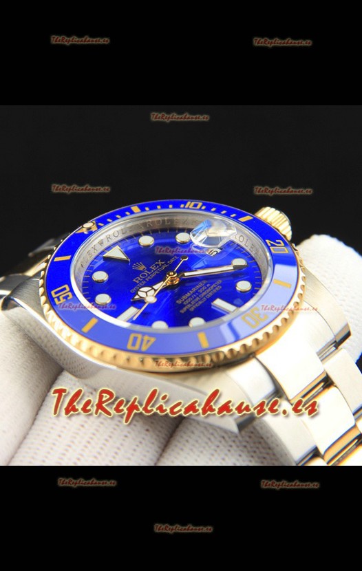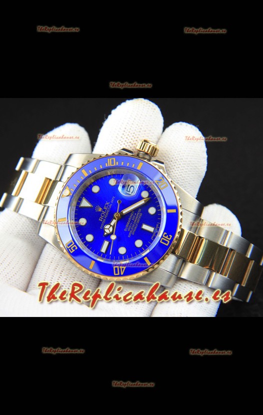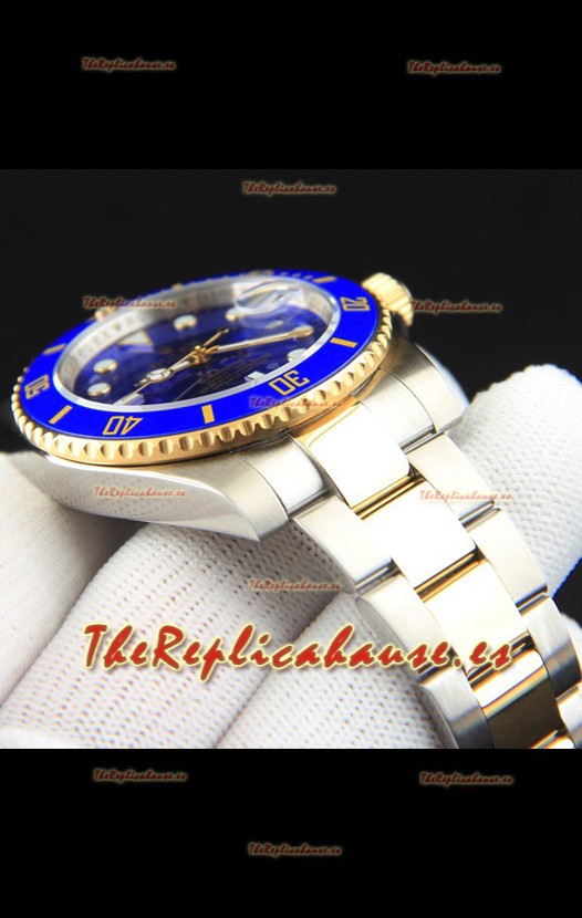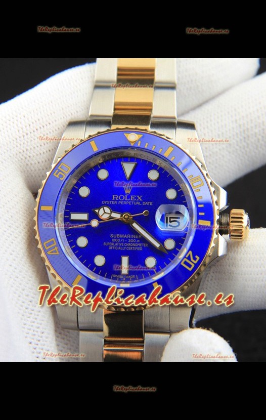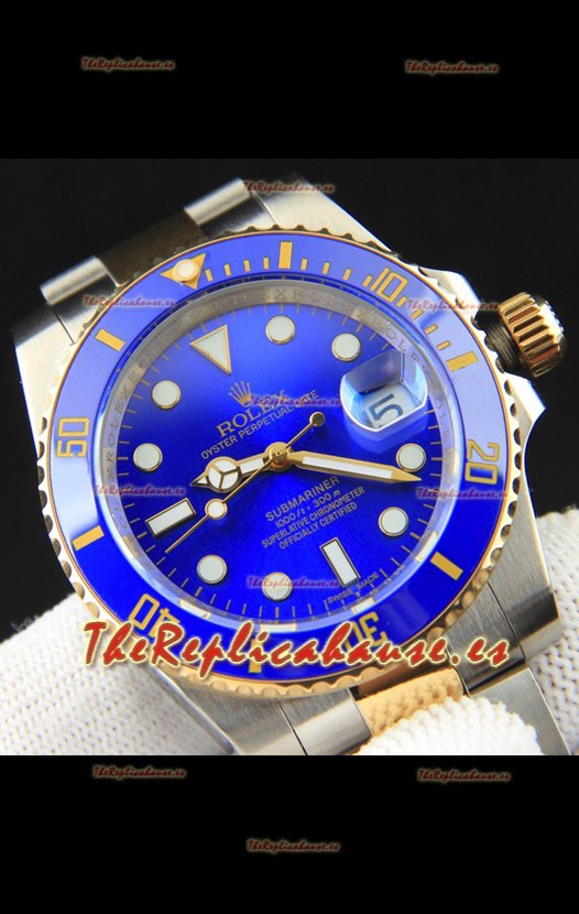 Rolex Submariner Japonés Reloj Réplica Caja en 2 Tonos Oro Amarillo Dial Azul