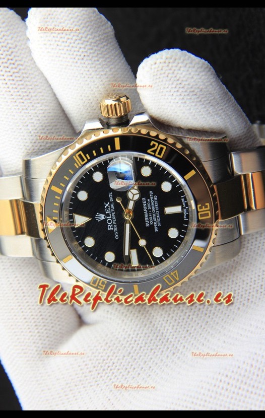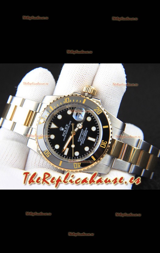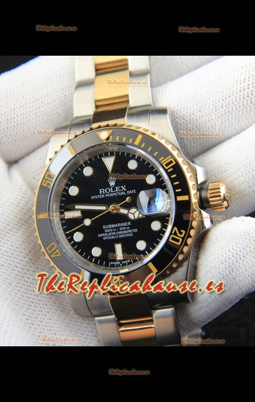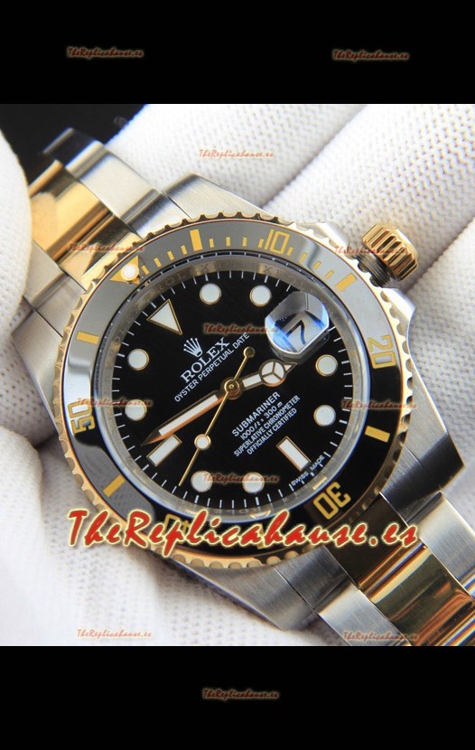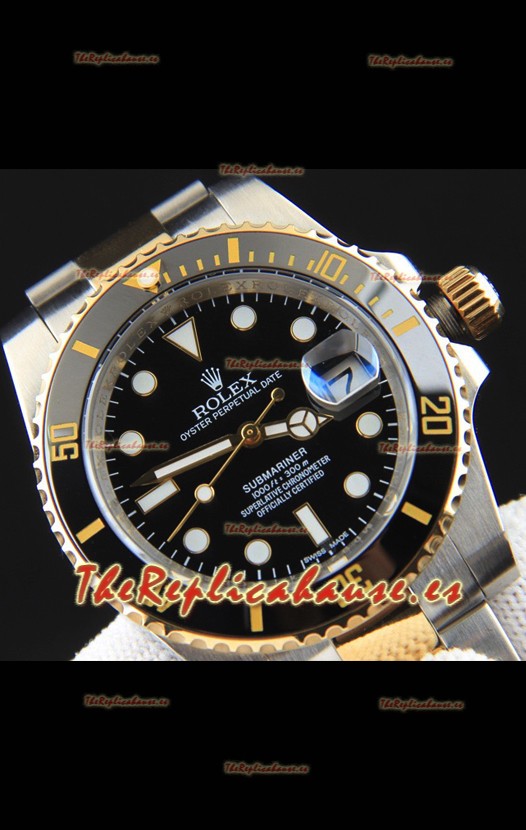 Rolex Submariner Reloj Réplica Japonés Caja Oro Amarillo en Dos Tonos Dial Negro