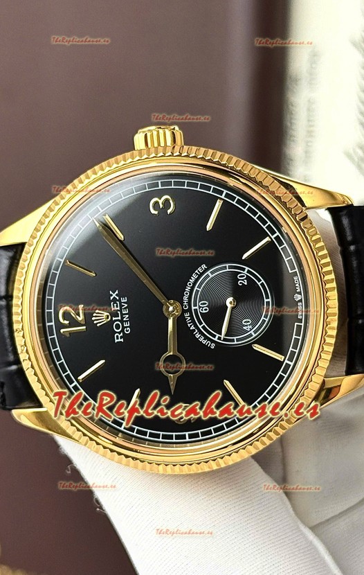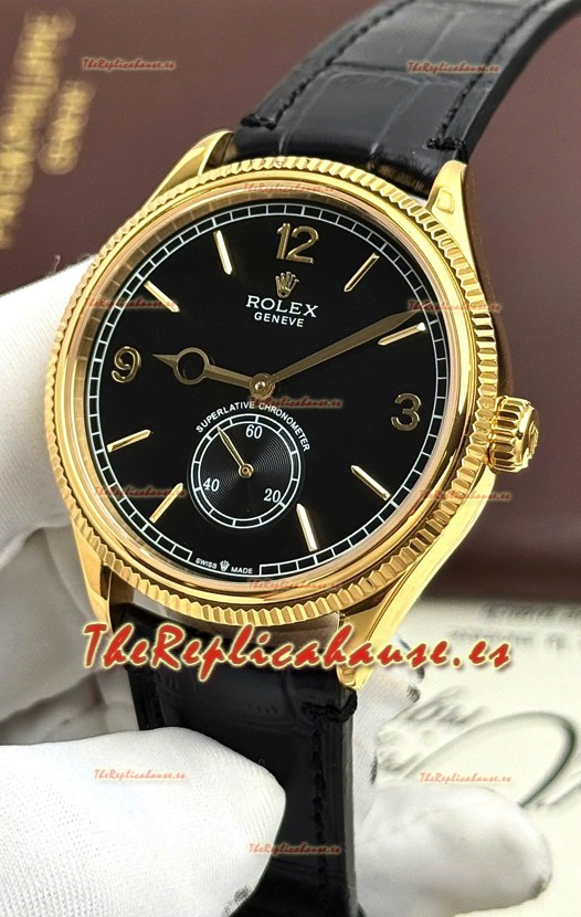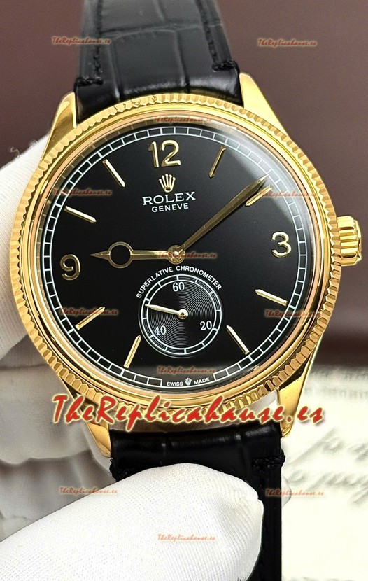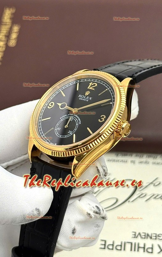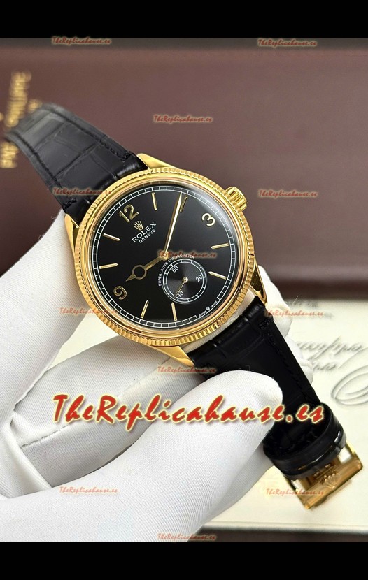 Rolex 1908 Perpetual Movimiento Suizo Reloj Réplica en Caja Oro Rosado Dial Negro